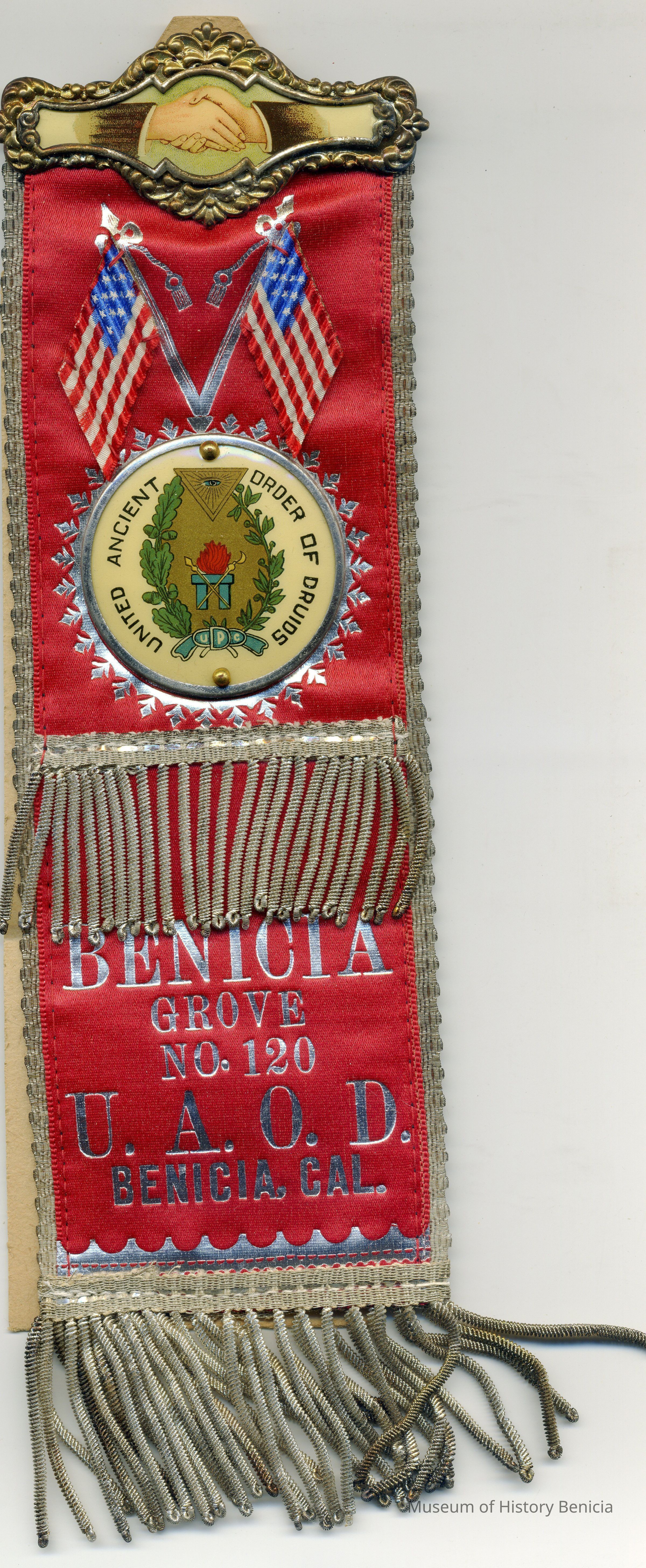 A medal for the United Ancient Order of Druids in Benicia Grove # 120. This medal was found in the baseball scrapbook donated by the Guibbini family. I assume this belonged to Arthur Guibbini.