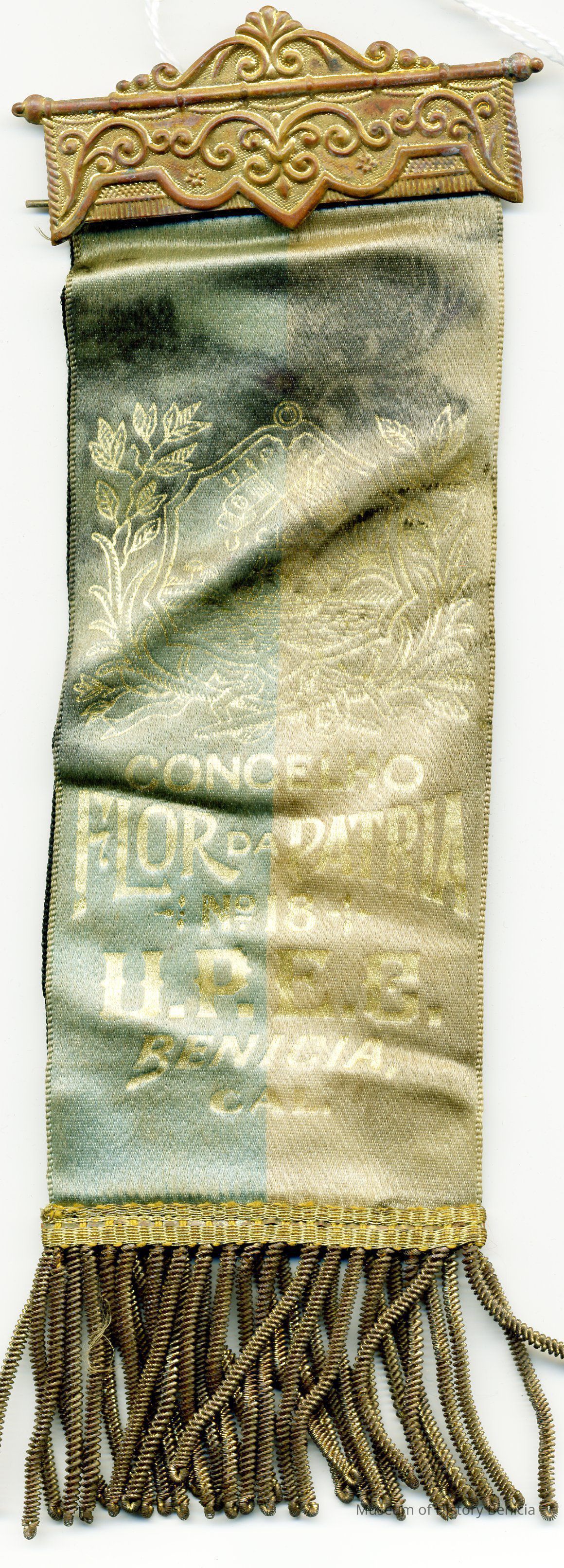 Medal (gold) - says "Conselho Flor da Patria" No. 18 U.P.E.C Benicia Cal. Unido Portuguesa do Estado California (United Portuguese of the United States).Collection
