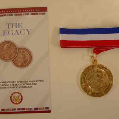 "World War II Veteran Honor and Remembrance Medallion" presented to Charles Hull by the Non Commissioned Officer's Association.