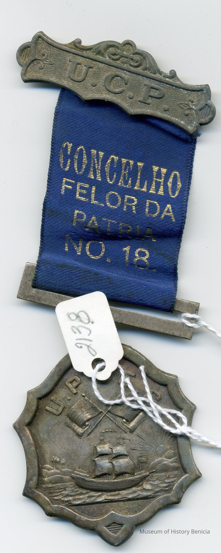 Medal - says "Conselho Flor da Patria" No. 18. Top bar says U.P.C. and medal says U.P.E.C. Unido Portuguesa do Estado California (United Portuguese of the United States)Collection
