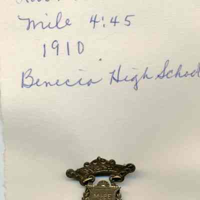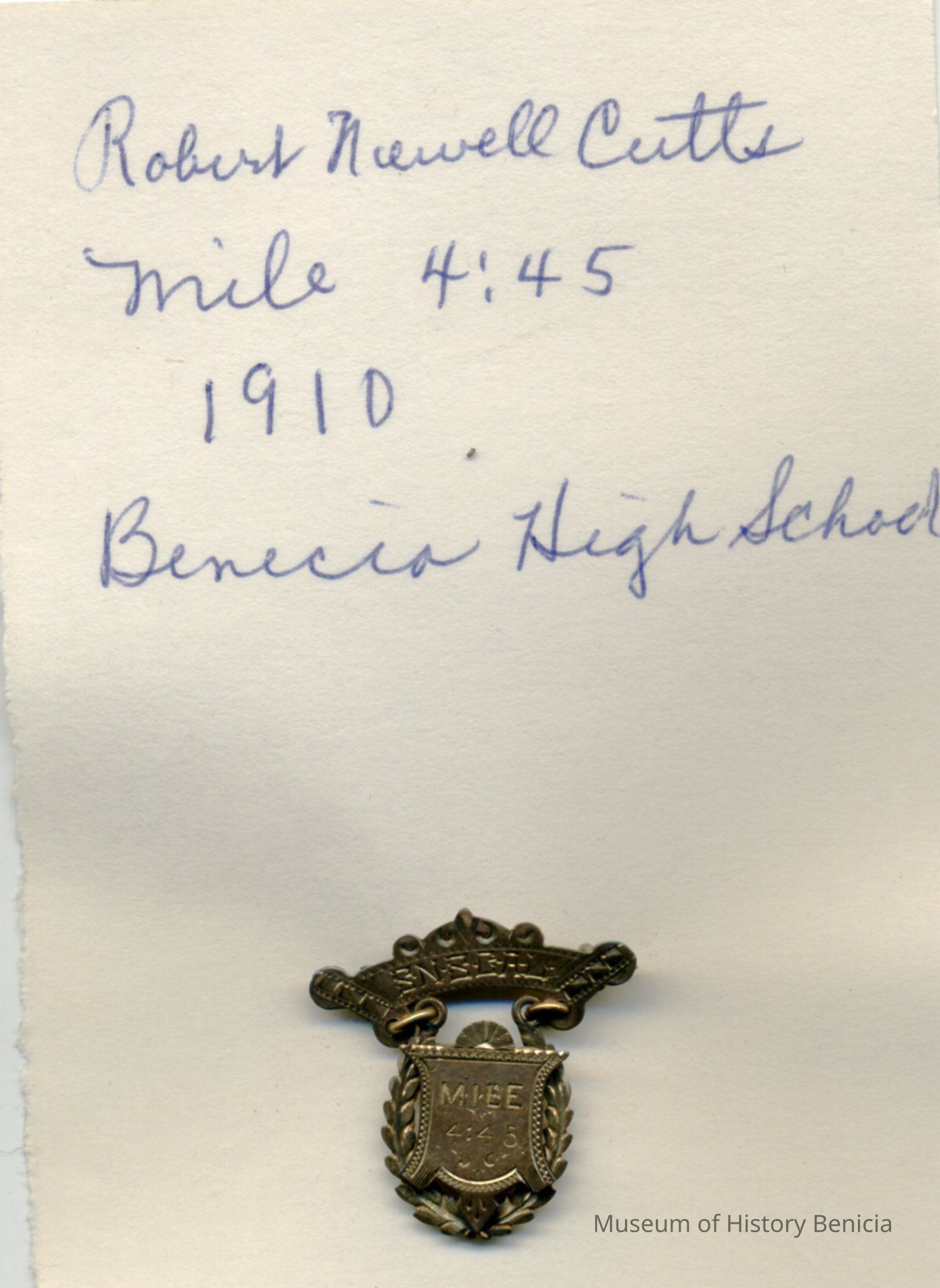 Robert Newell Cutts mile 4:45 minutes 1910 Benicia High School. On back is RNC letters