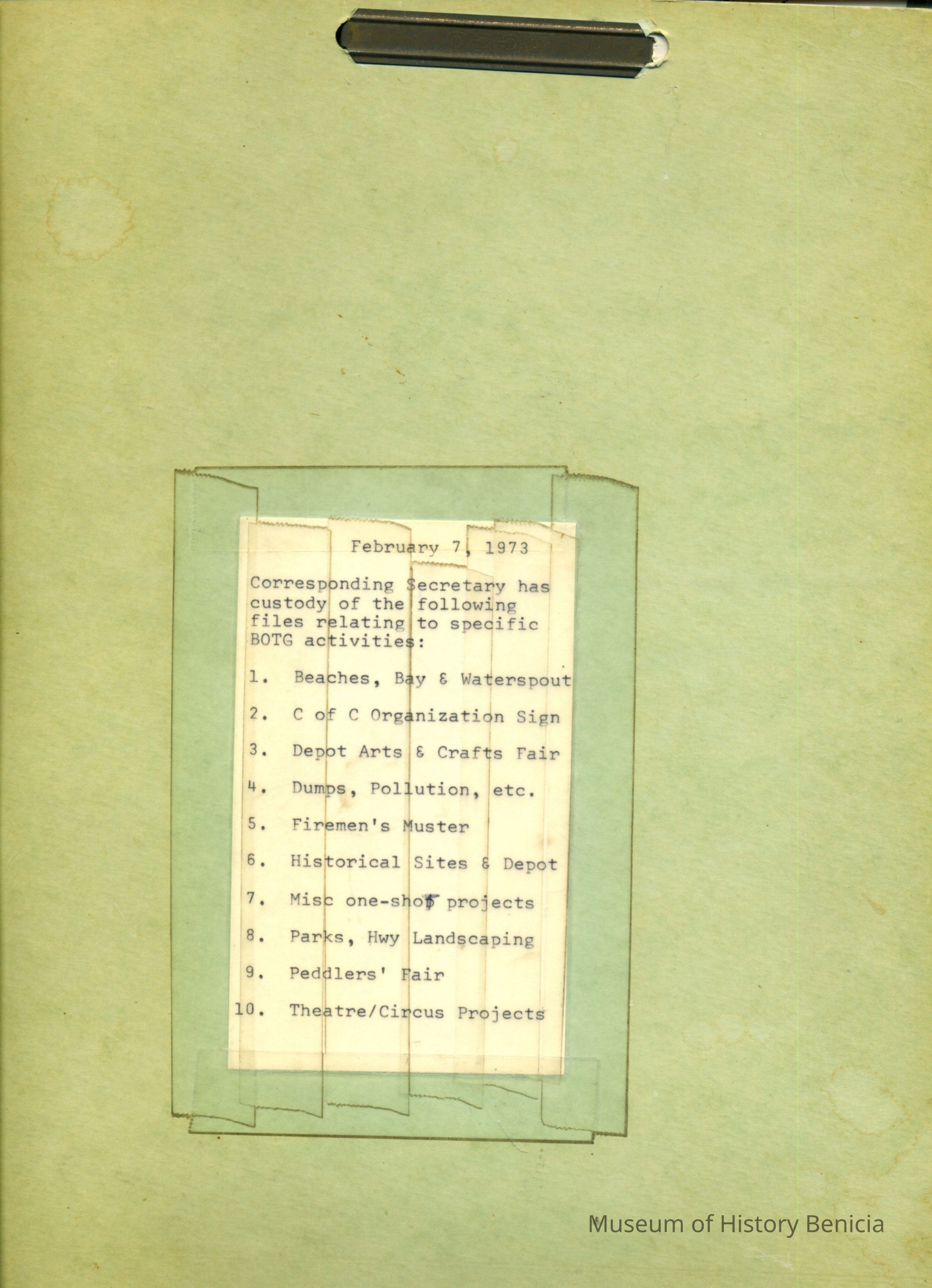 Minutes and Record of BOTG ( Benicia Old Town Group ) List of Members of BOTG