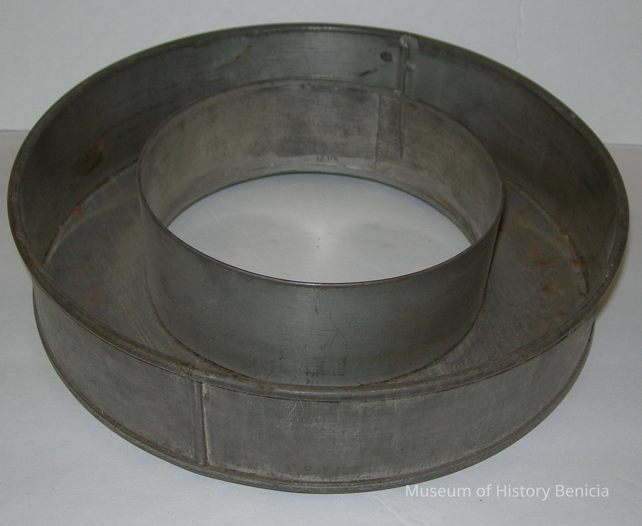 metal ring mold used in food preparation; small handle for hanging at one end; 2-1/2 deep; finished molded item would be 2" across