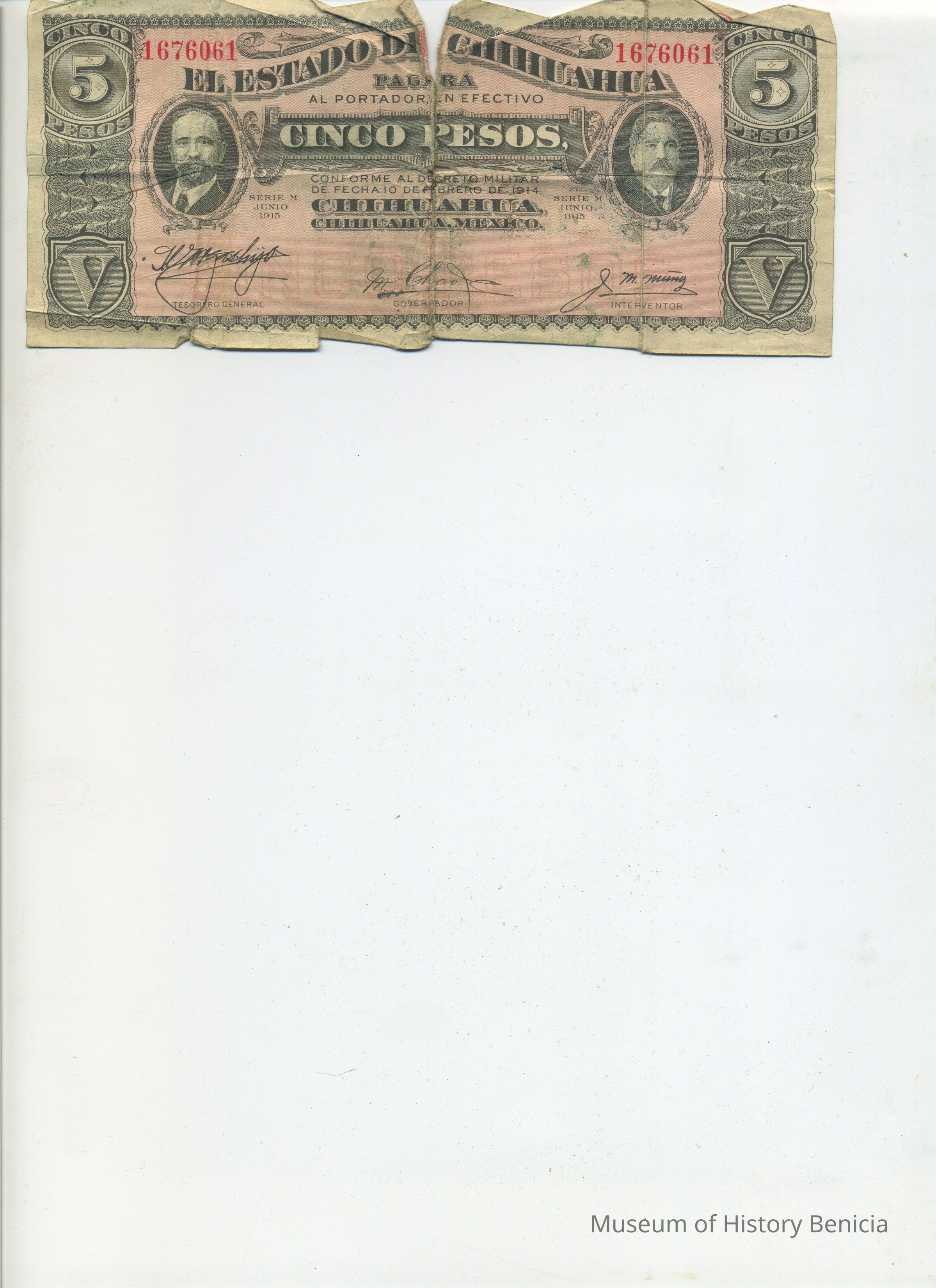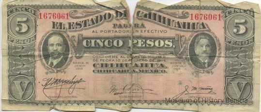 Five Peso El Estado de Chihuahua currency - dated June 1915