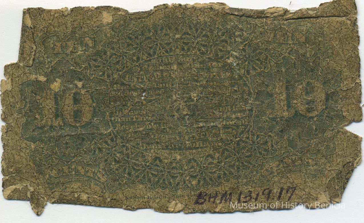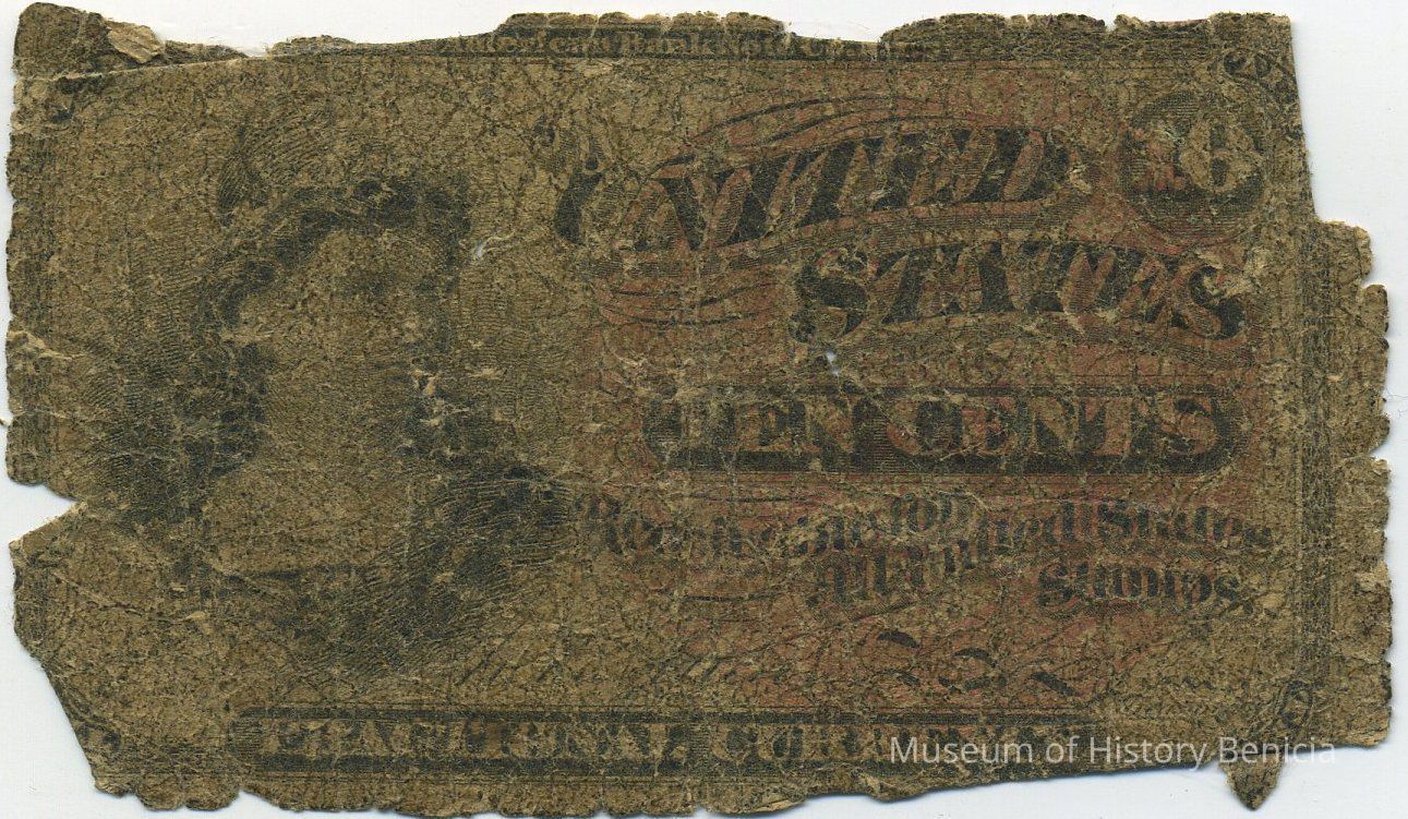 Ten Cents Fractional Currency - United States - cannot determin the date. It appears to be the fourth issue which was between 07/14/1869 and 02/16/1875.