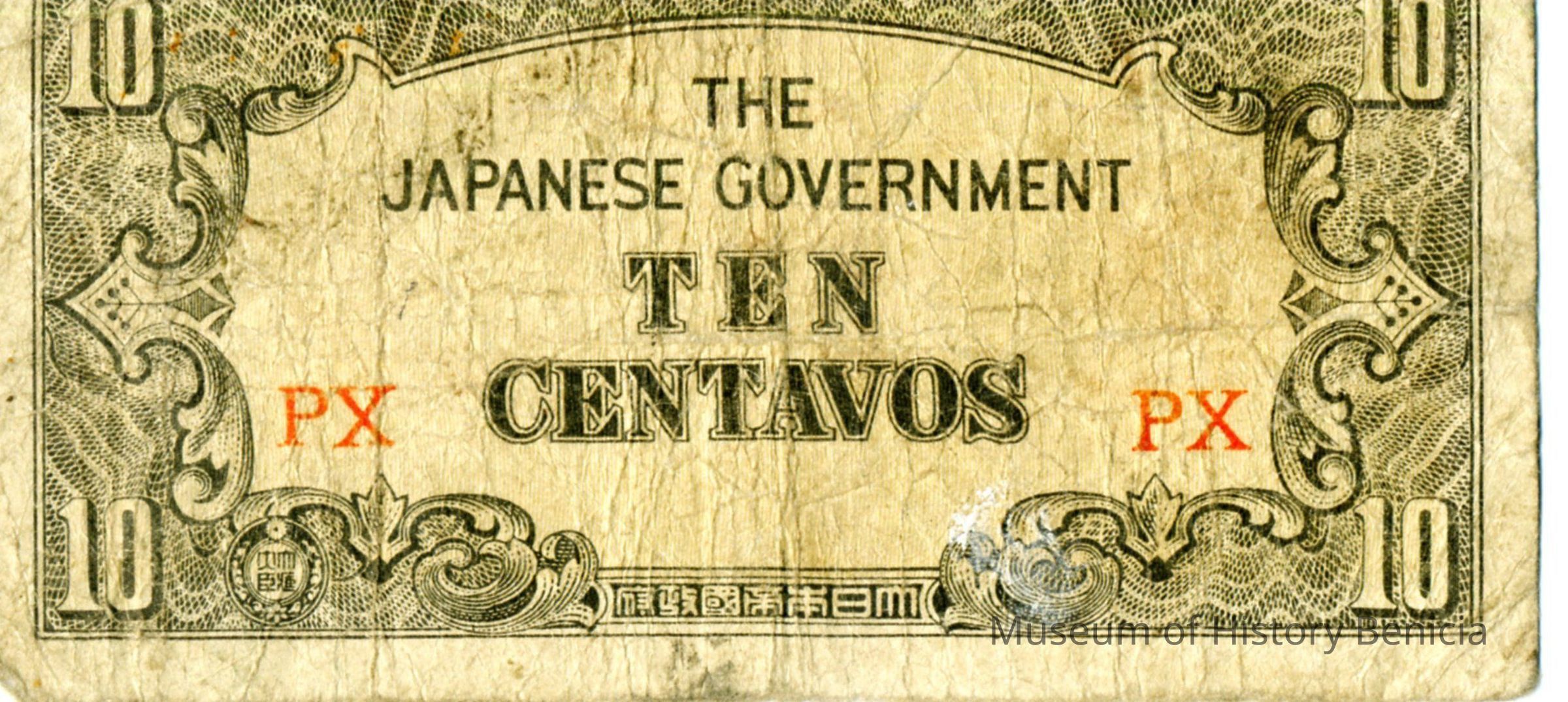 Bill from WWII. It says "Ten Centavos" "The Japanese Government".