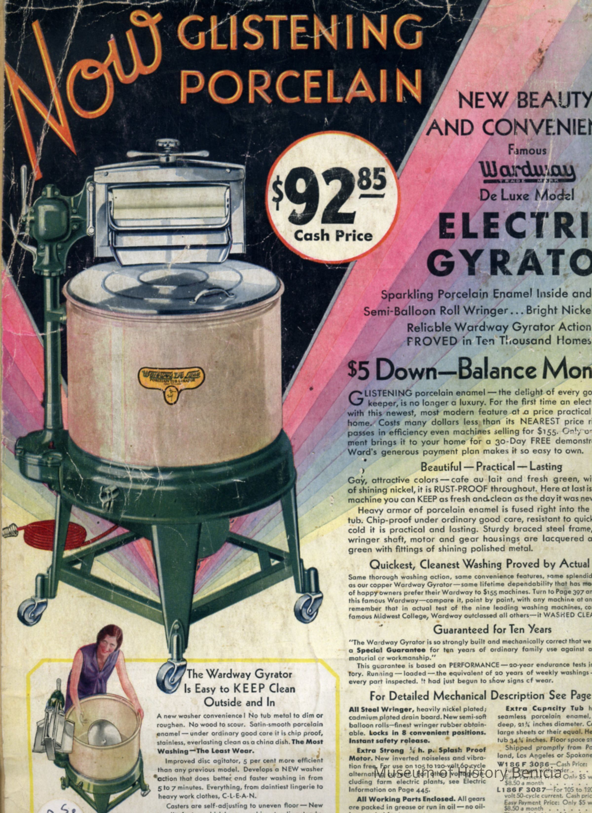 "Our Finest Hardwood Refrigerator" started at $24.95. The 'ice box' as we refer to them today was kept cool/cold with 50 pound blocks of ice. A three piece bedroom vanity suite sold for $119.75. On the "Budget Plan", the first payment was $12.00 with monthly payments of $9.50.
