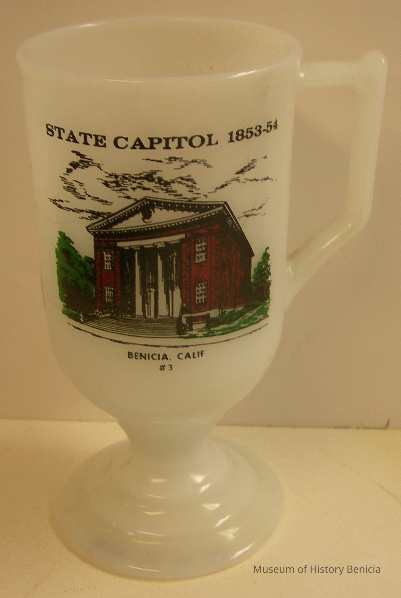 Handled Mug - milk glass - Commemorative "State Capitol 1853-54 Benicia Calif. #3" 5-1/2"H x 2-5/8"Diameter