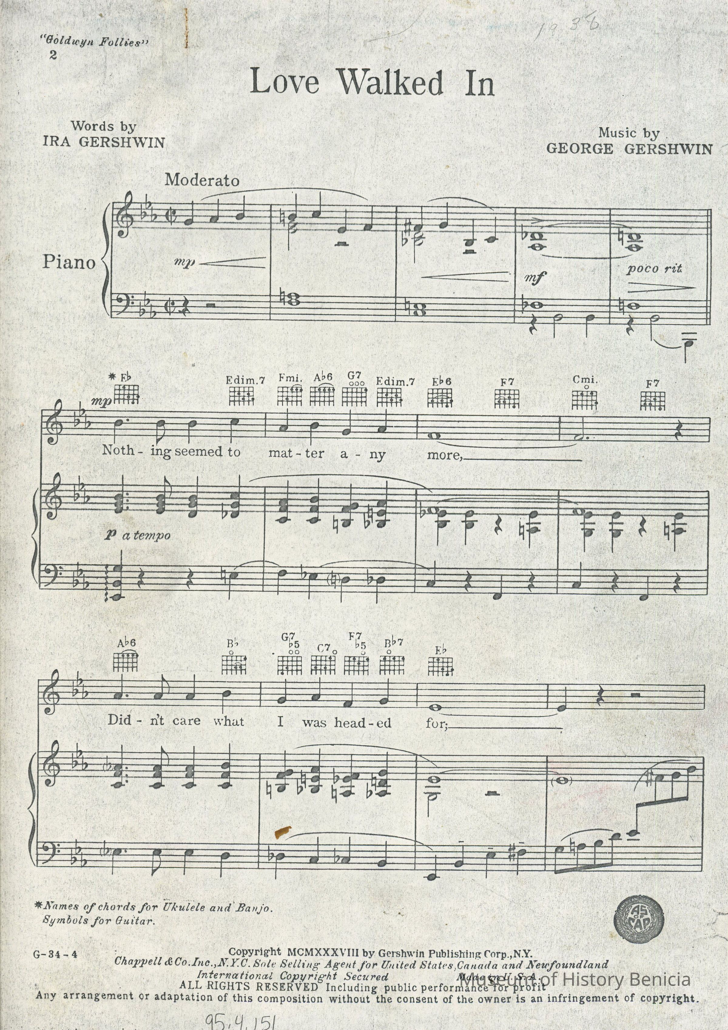 Sheet Music - "Love Walked In" Words by Ira Gershwin, Music by George Gershwin