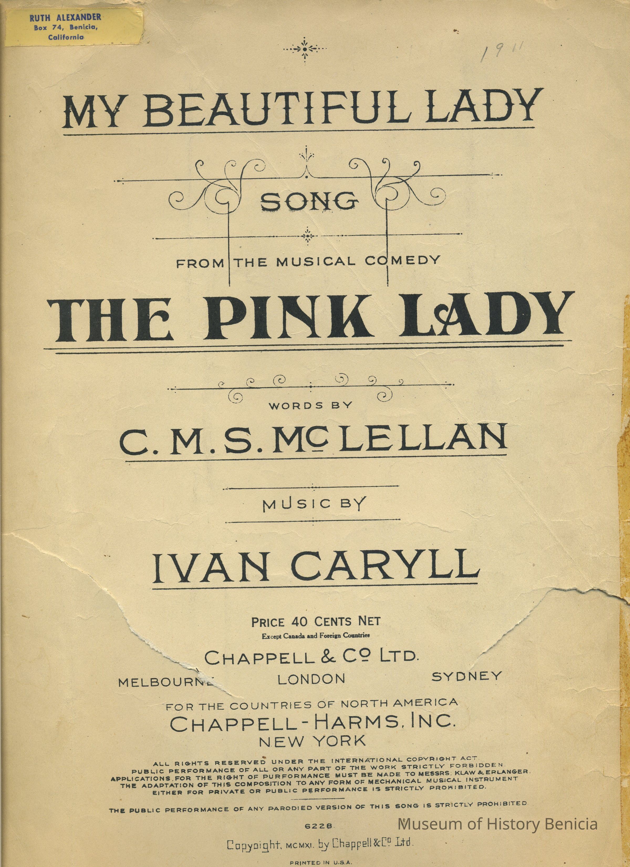 From the Musical Comedy "The Pink Lady" 1911
