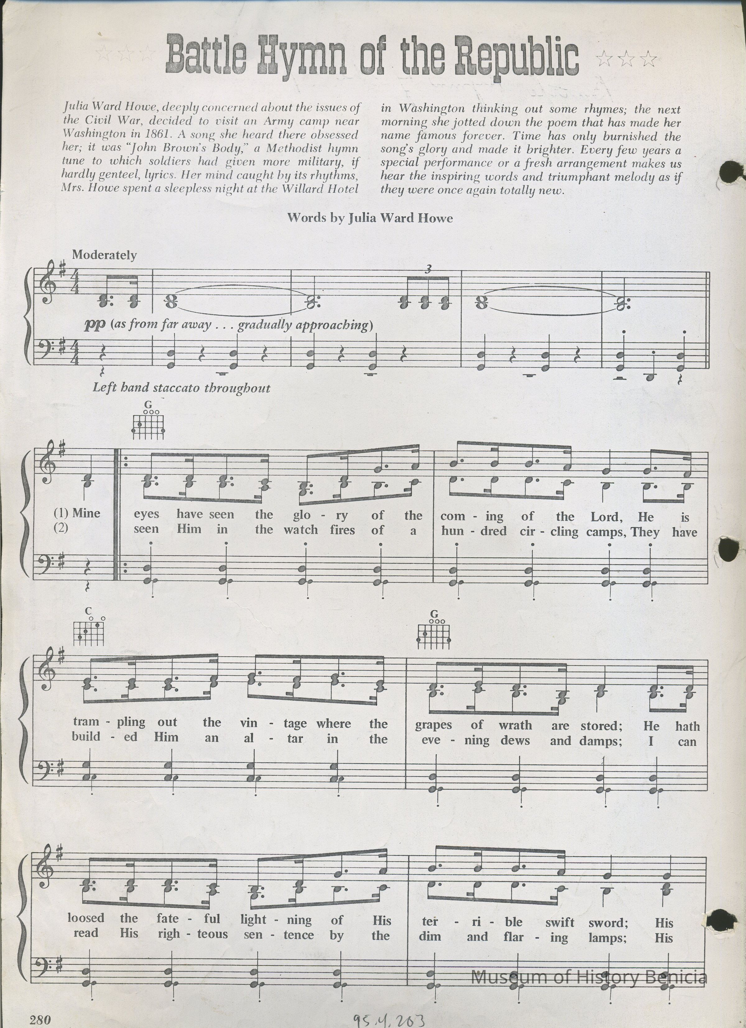 Sheet Music - "Battle Hymn of the Republic" Words by Julia Ward Howe