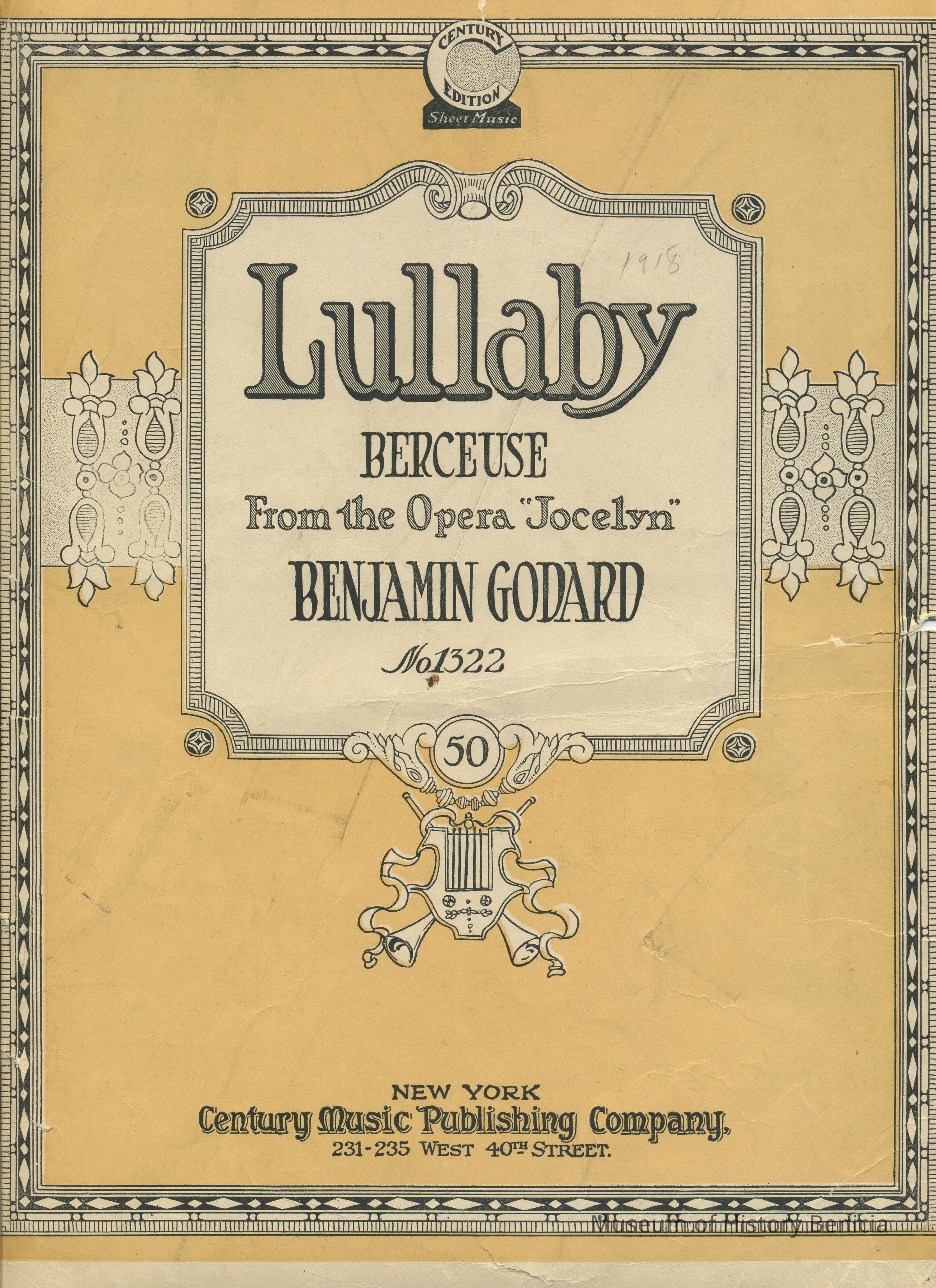 Sheet Music - "Lullaby Berceuse" from the Opera "Jocelyn" by Benjami Godard No. 1322