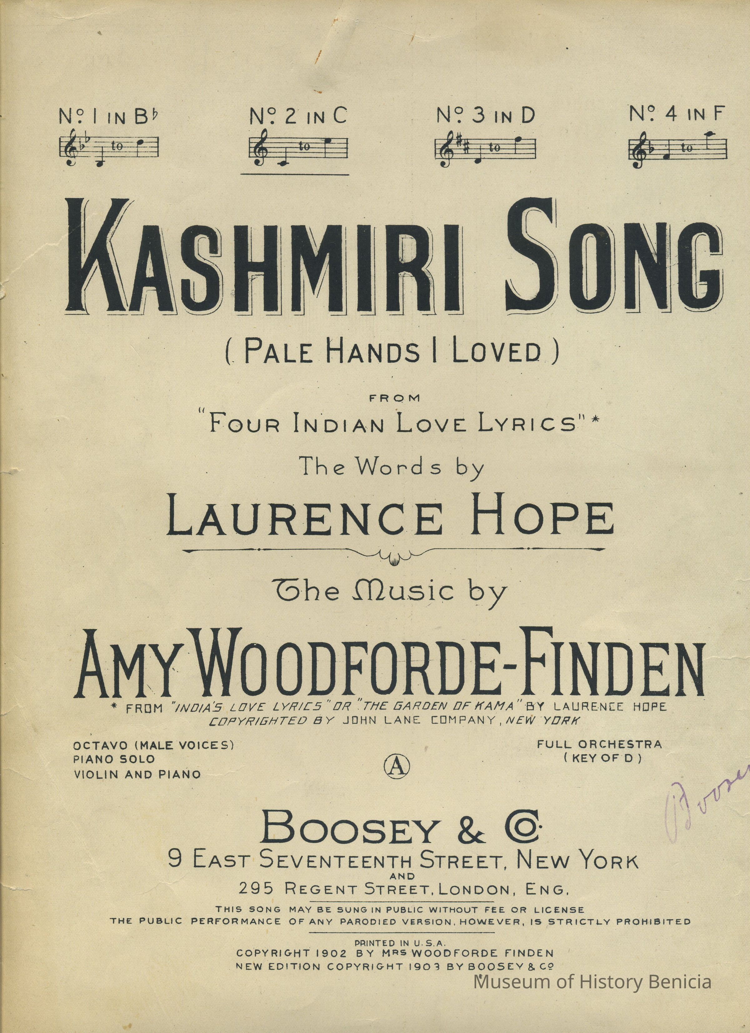 Words by Laurence Hope, Music by Amy Woodforde-Finden