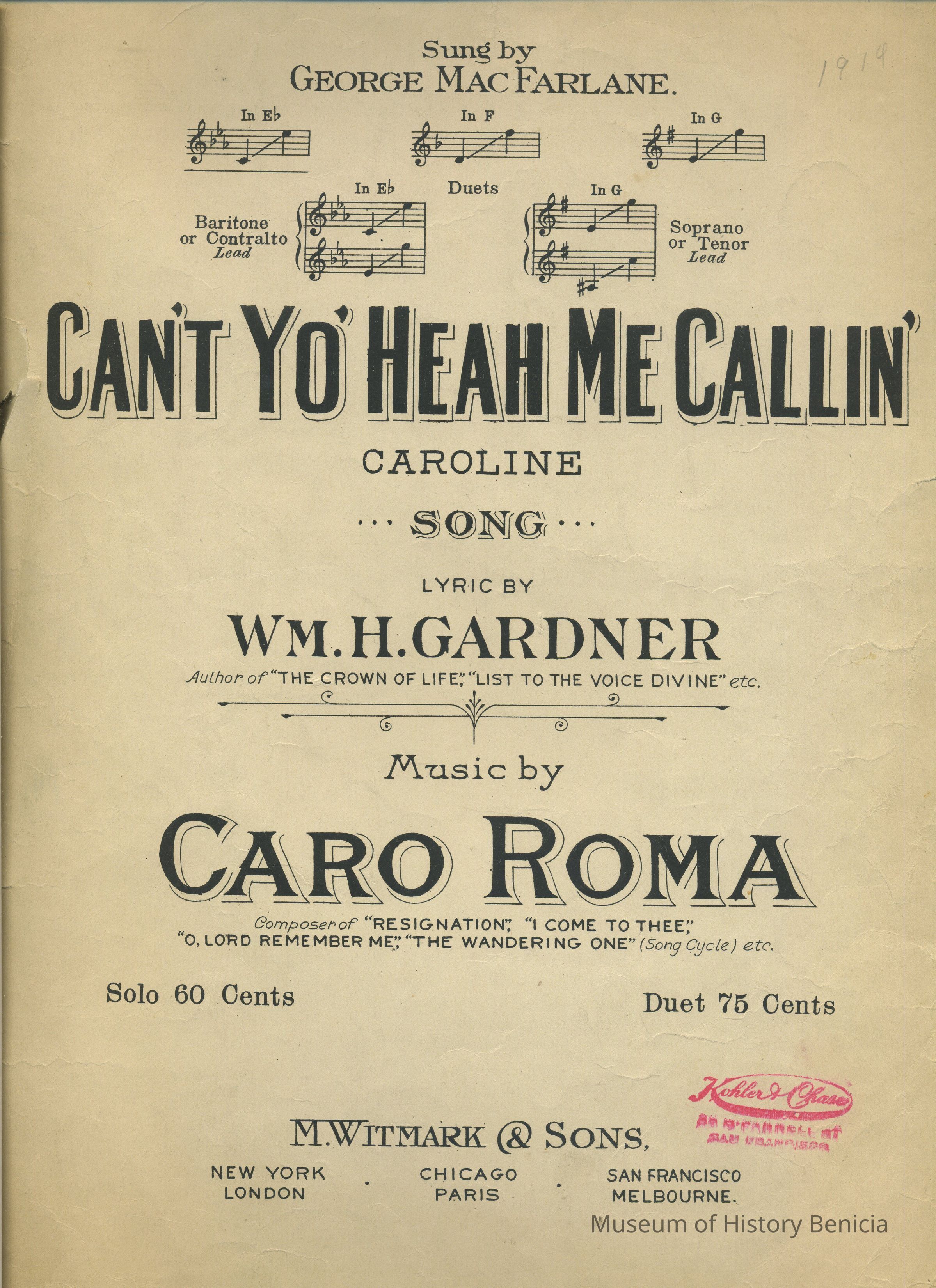 Sheet Music - "Can't Yo' Heah Me Callin' " Caroline Lyric by Wm. H. Gardner,
