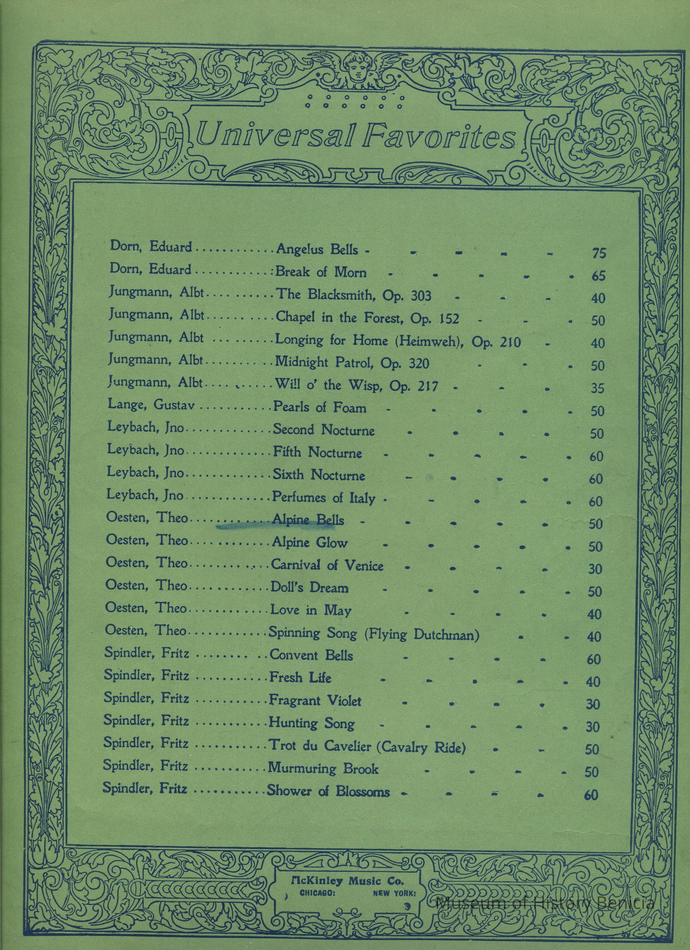 Sheet Music - "Alpine Bells" from Universal Favorites