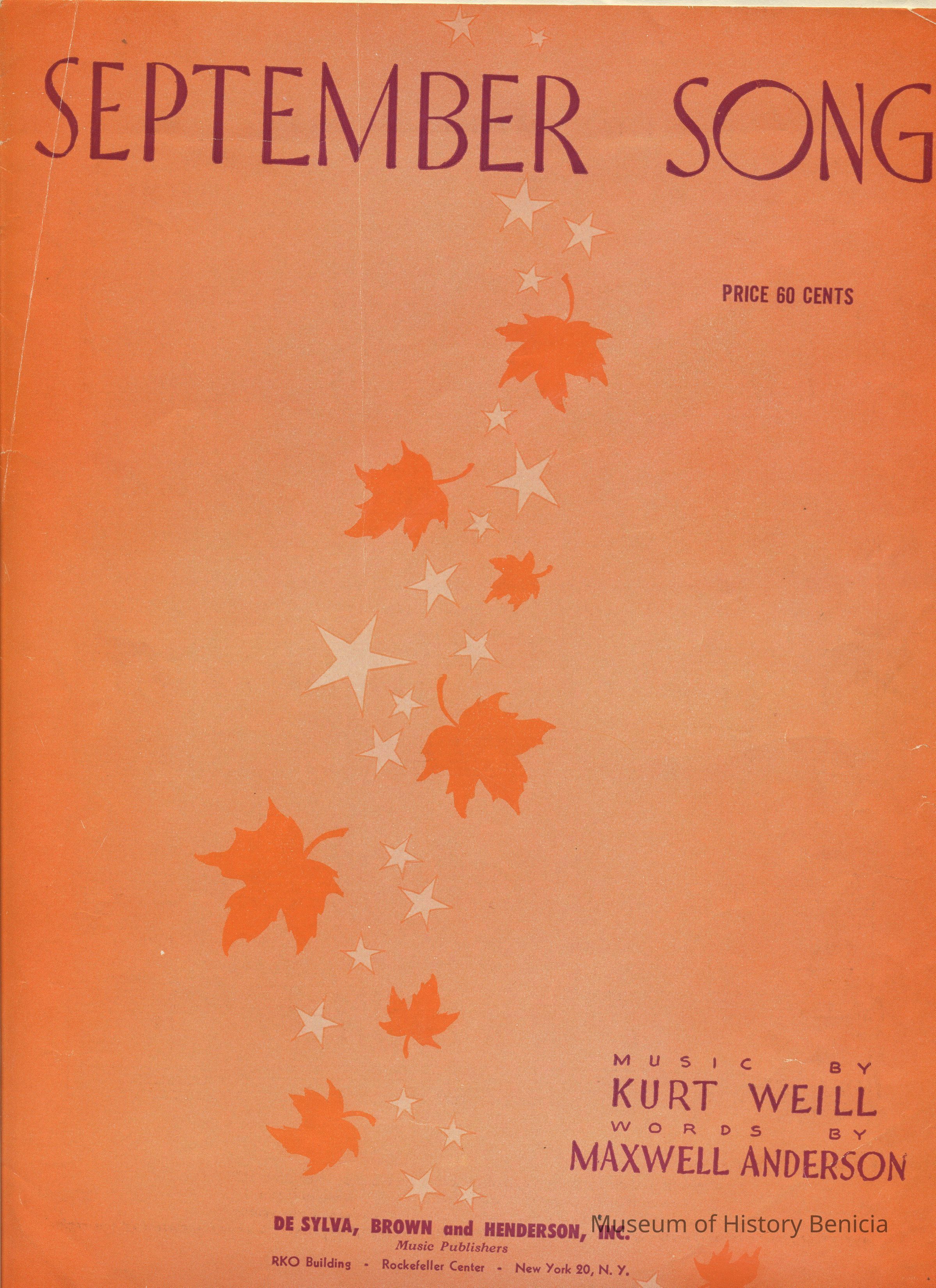 Sheet Music - "September Song" Music by Kurt Weill, Words by Maxwell Anderson