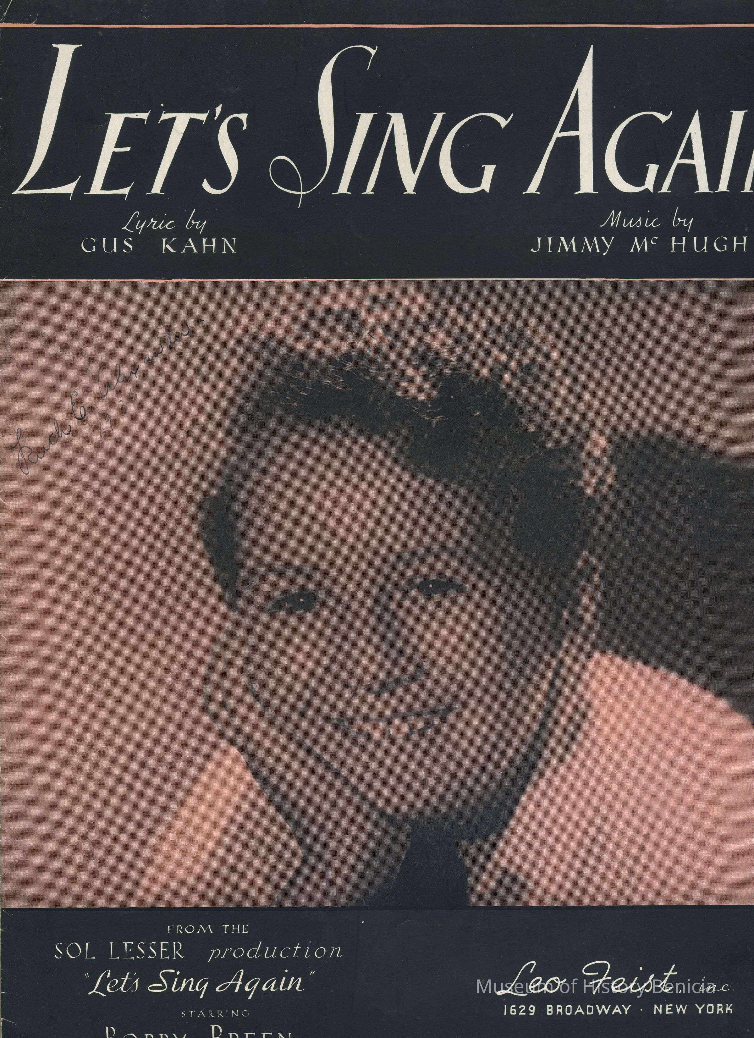 Sheet Music - "Let's Sing Again" Lyrics by Gus Kahn, Music by Jimmy McHugh