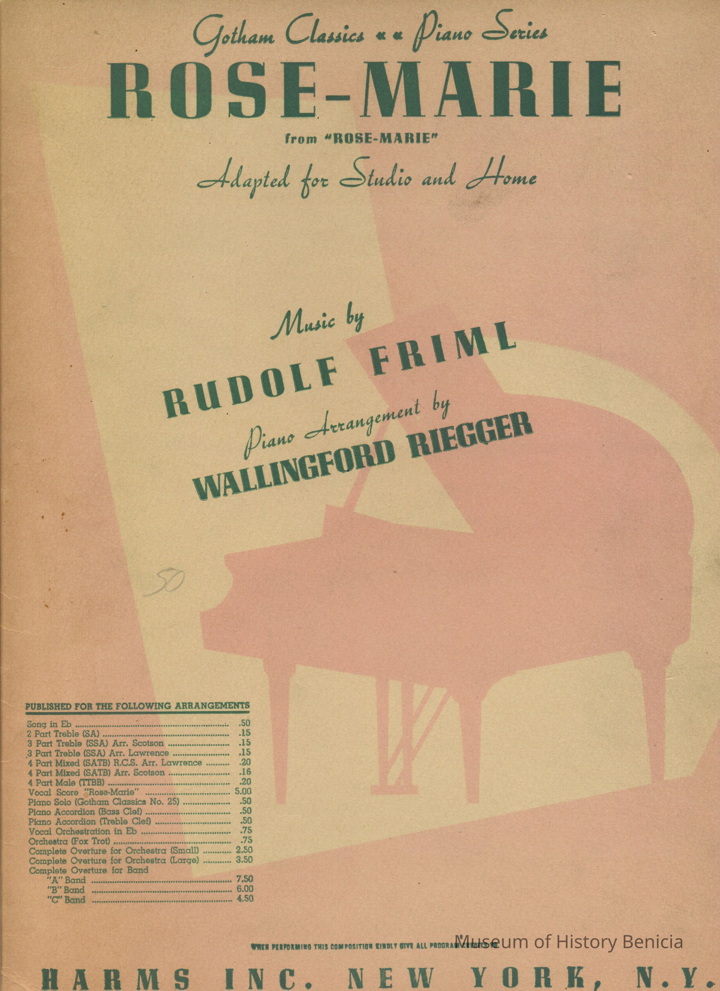 Music by Rudolf Frimi, Piano Arrangement by Wallingford Riegger 1915