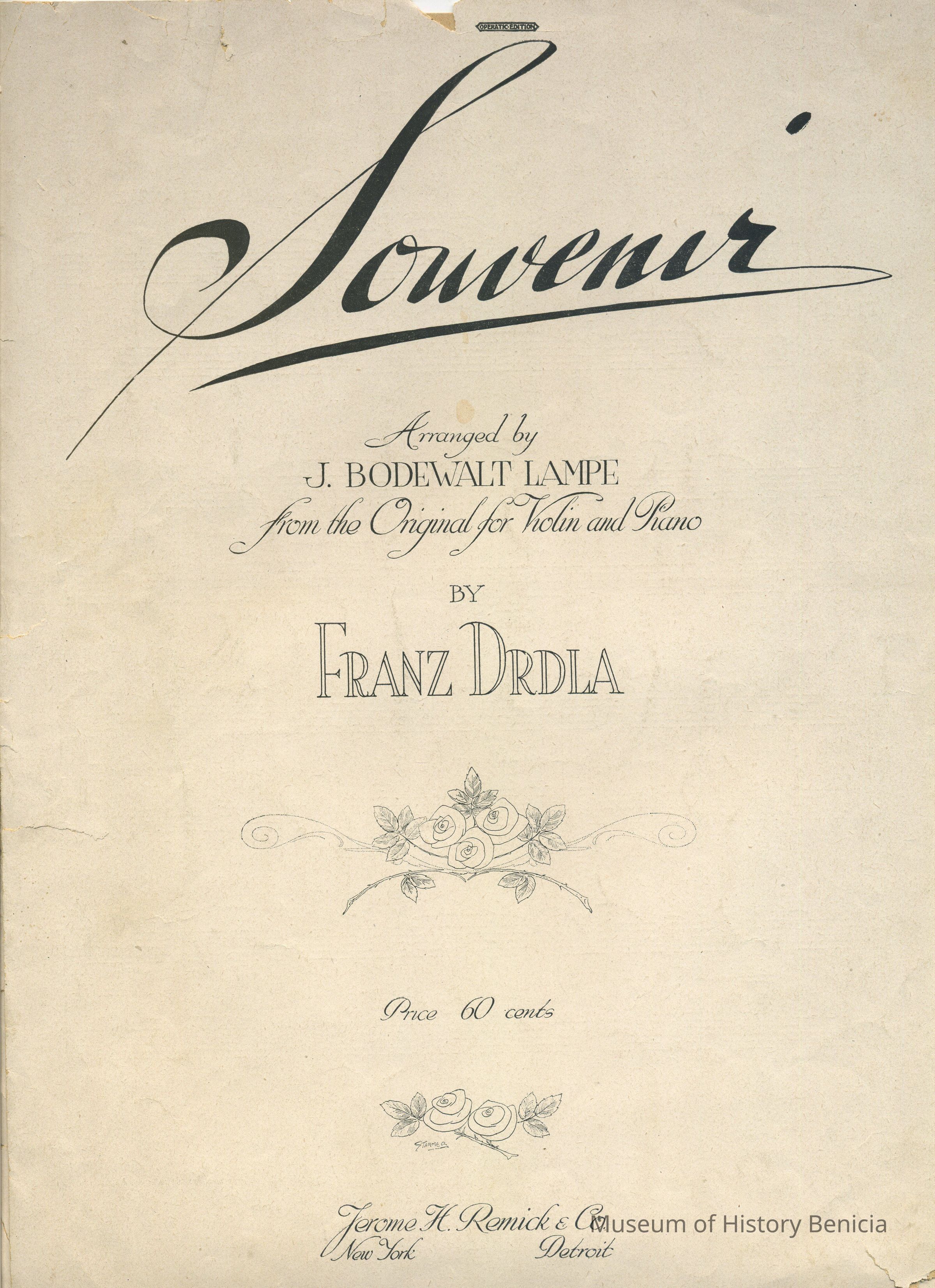 Sheet Music - "Souvenir" by Franz Drdla, arranged by J. Bodewalt Lampe for violin and piano
