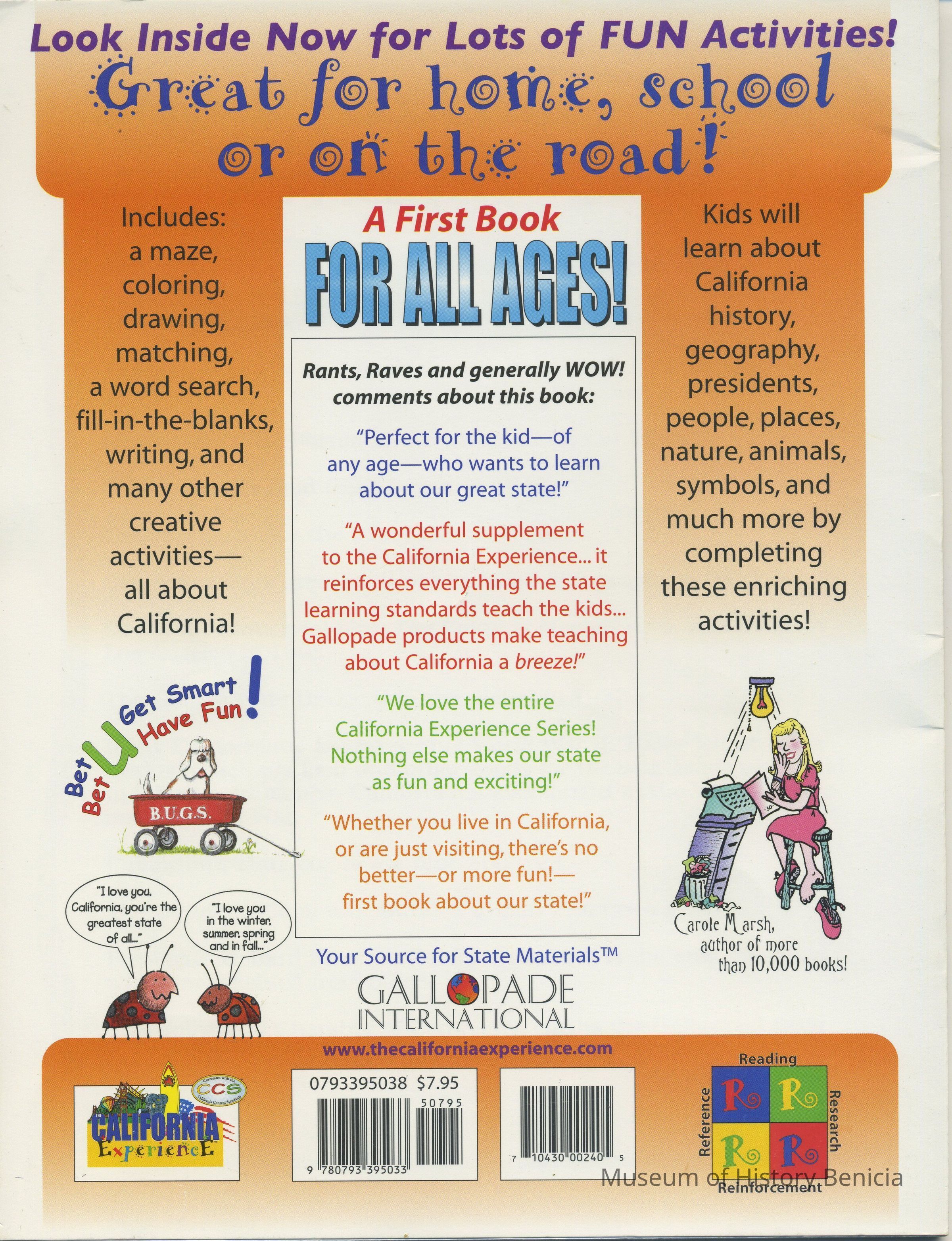An activity book which correlates with California Content Standards and a