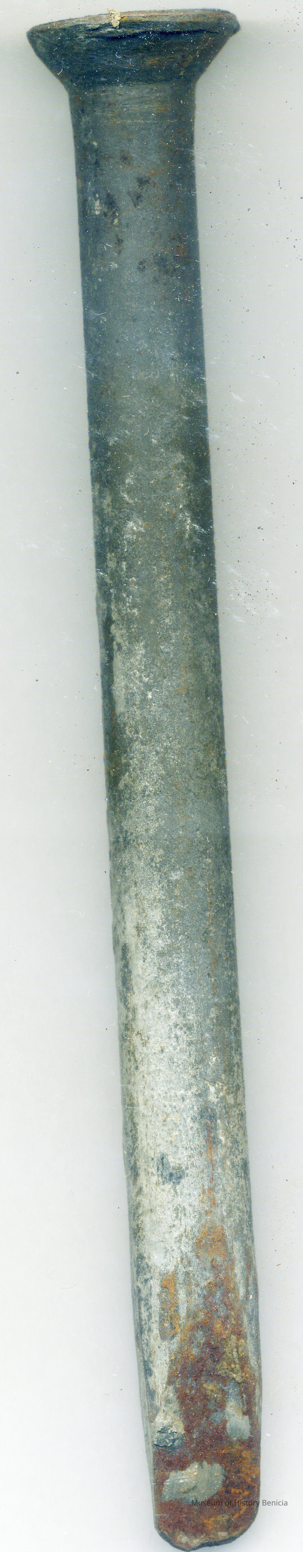 Spike (large mauls) used to fasten planks to timbers in wooden ships. Usually used at the ends of hull planking. one of a group of ten