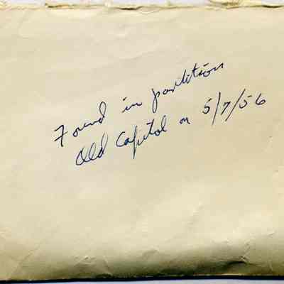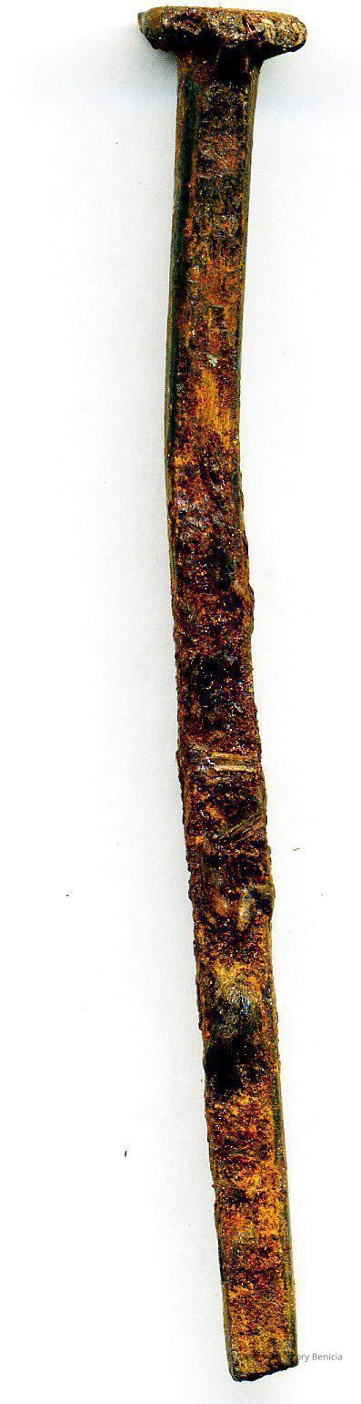 This is a pair of square nails found in the partitions of the Old State Capitol building on 05/07/1956. One is 2.5 inches long and the other is 3.25 inches long. They have square heads and look hand made.Collection