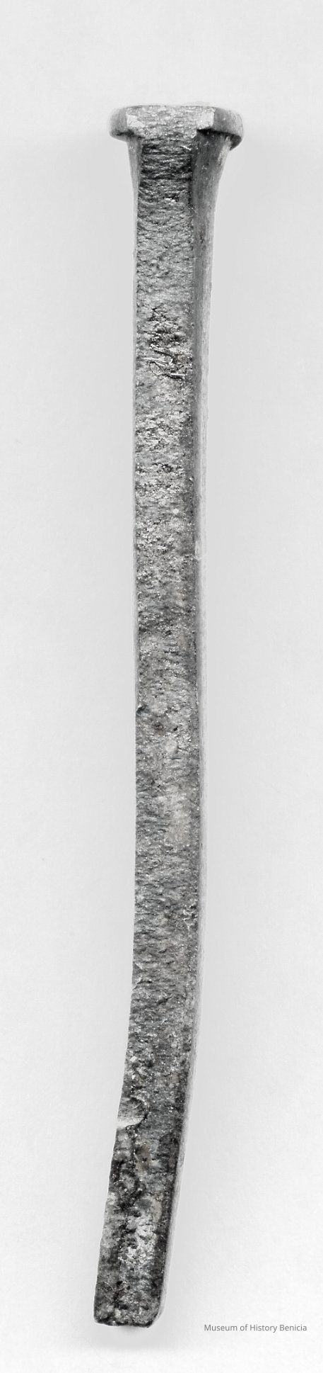 Square nail found on grounds of Clocktower. It is 2 5/8" long with a rectangular head, hand-made, square shaft.