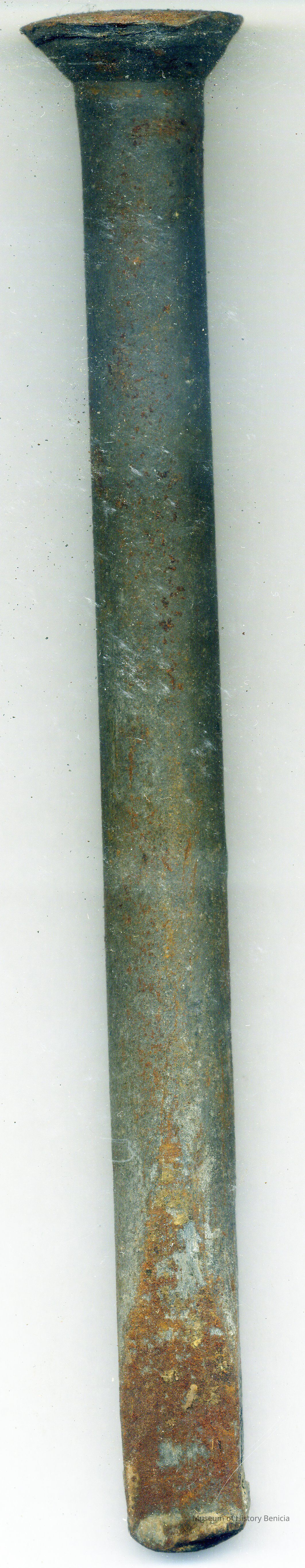 Spike (large mauls) used to fasten planks to timbers in wooden ships. Usually used at the ends of hull planking. one of a group of ten