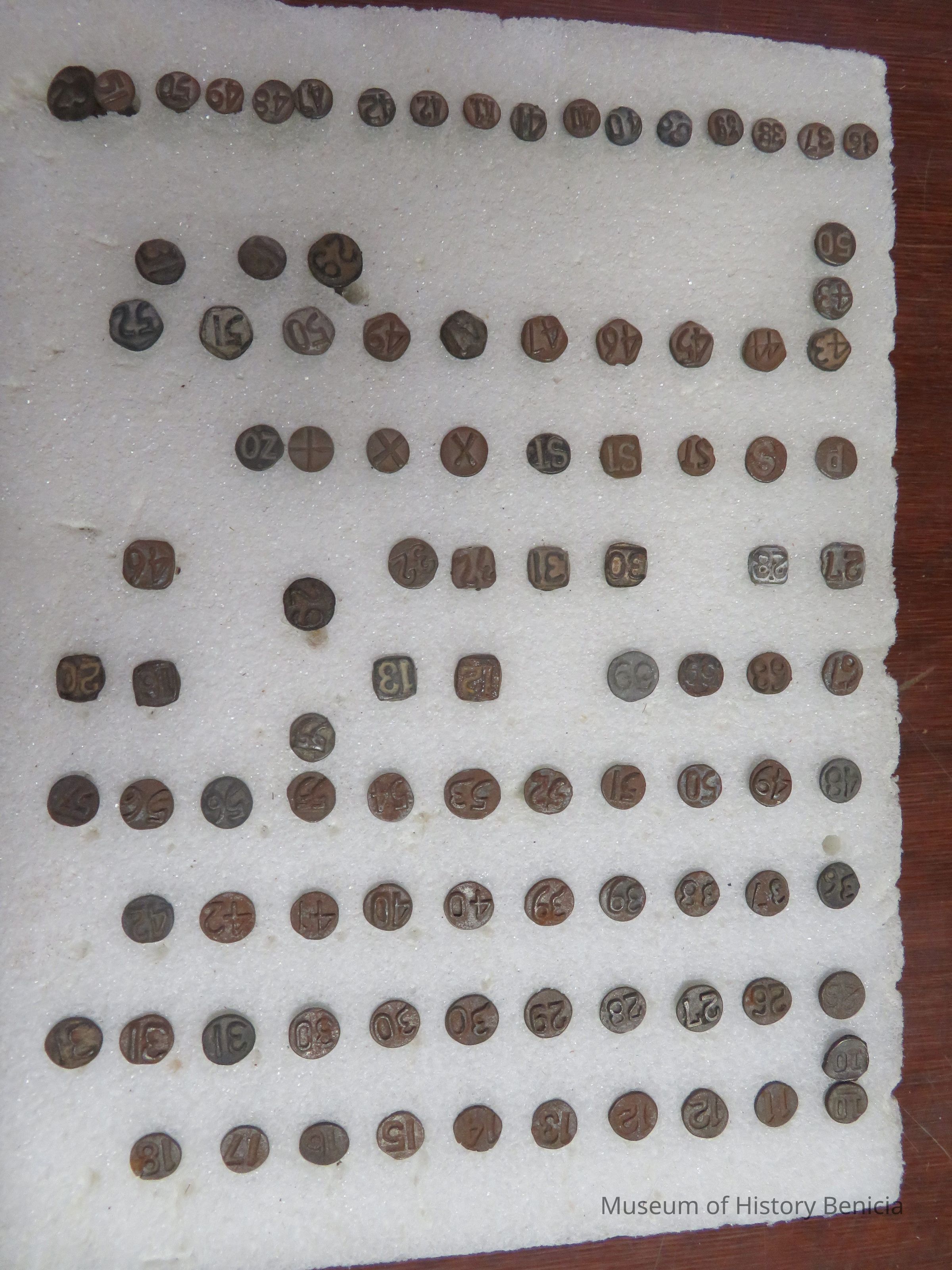 This collection contains 101 date nails from years 1910 to 1962. They are made of steel and are 2 1/4" and 2 1/2" in length. The nail heads vary in shapes and sizes.