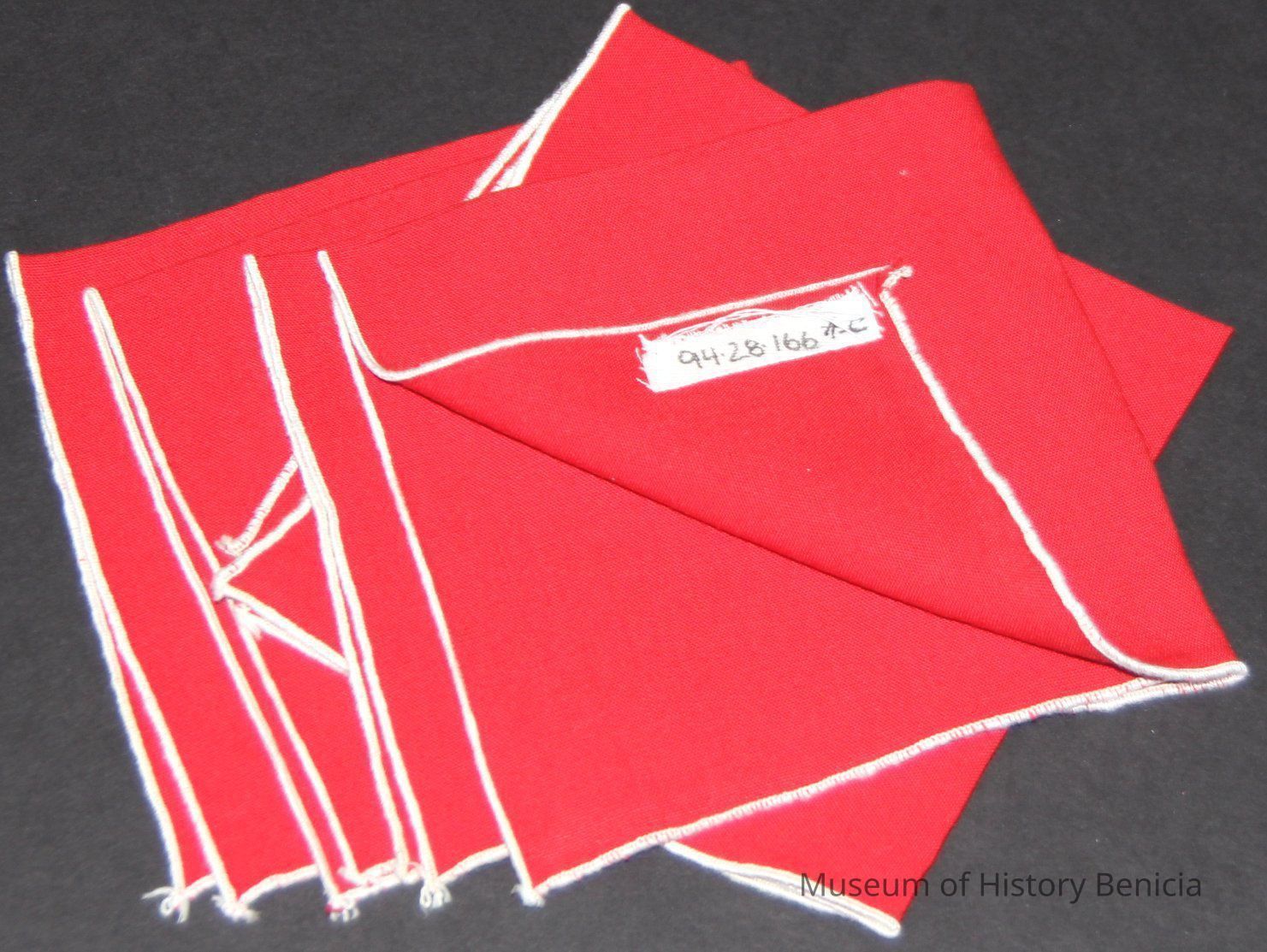set of 3 red luncheon size napkins - white finishing stitch border.
