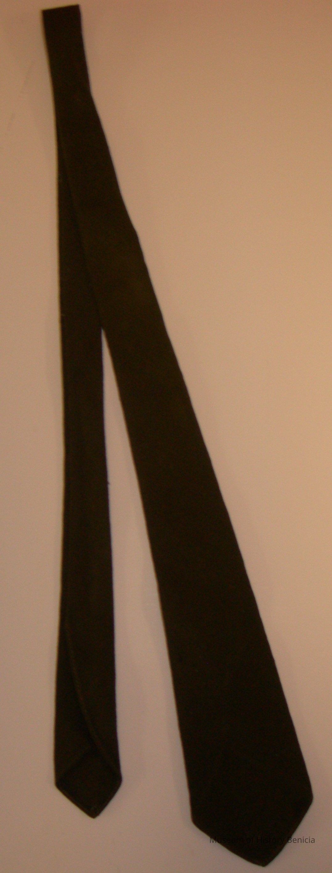 Men's uniform necktie, army green woven fabric; 46-1/2" long, 3" wide at one end, 1-1/2" at other