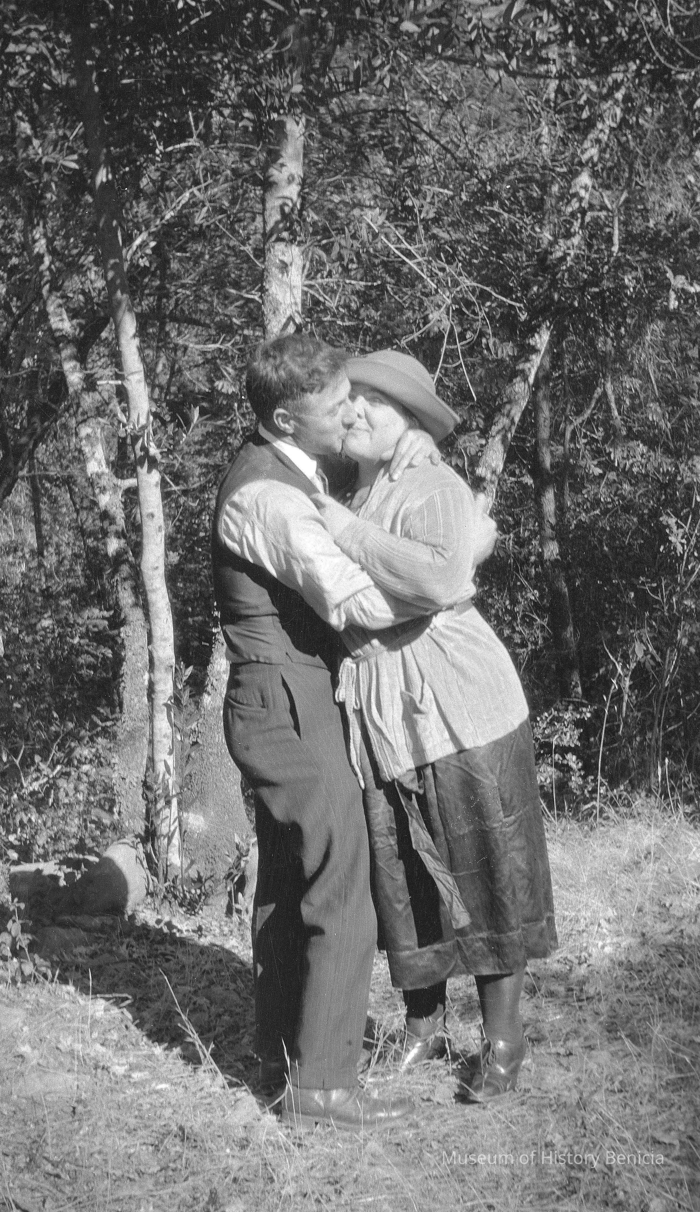 A couple kissing in a forest. Woman looks like Mary Canessa who lived with Molfino's for awhile.