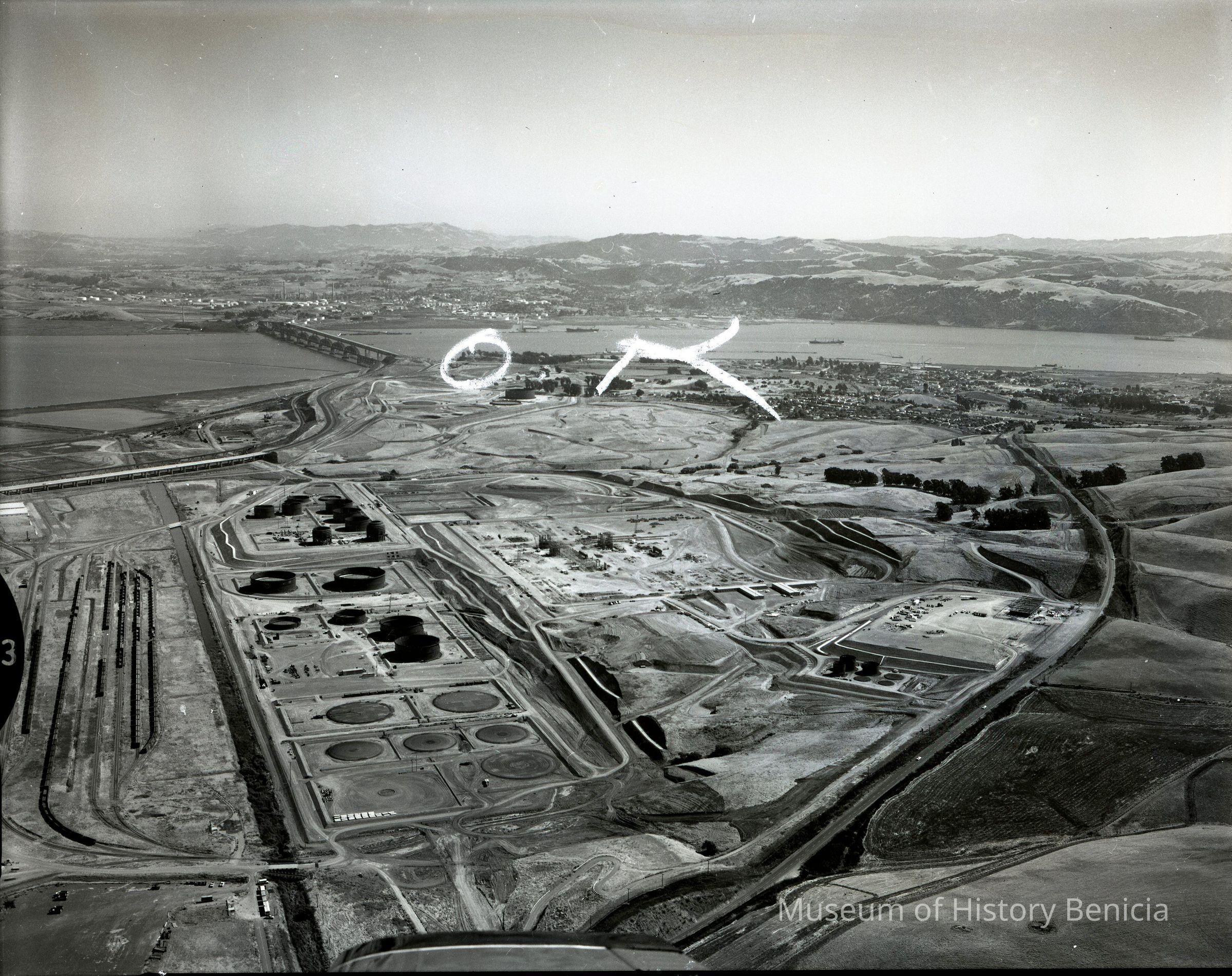 B/W negative for BHM99.11.111 early construction of the Humble Oil Refinery note: written on negative in grease pencil: "O.K."