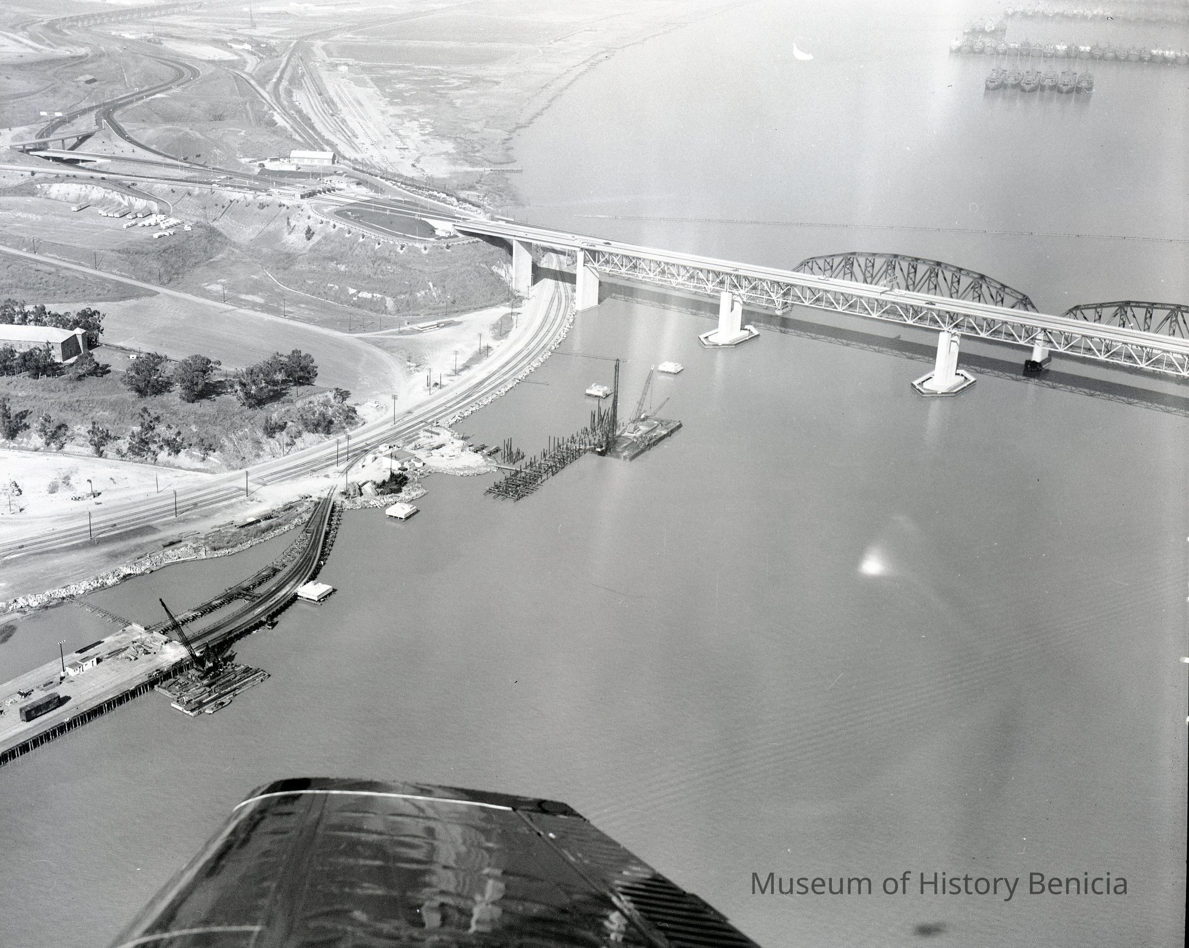 B/W aerial negative of dock/pier construction