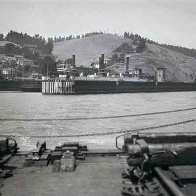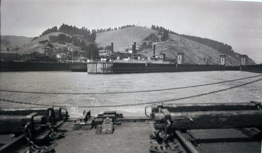 B/W photo of the ferry "Contra Costa" at dock in Port Costa. see contact print BHM98.99.4