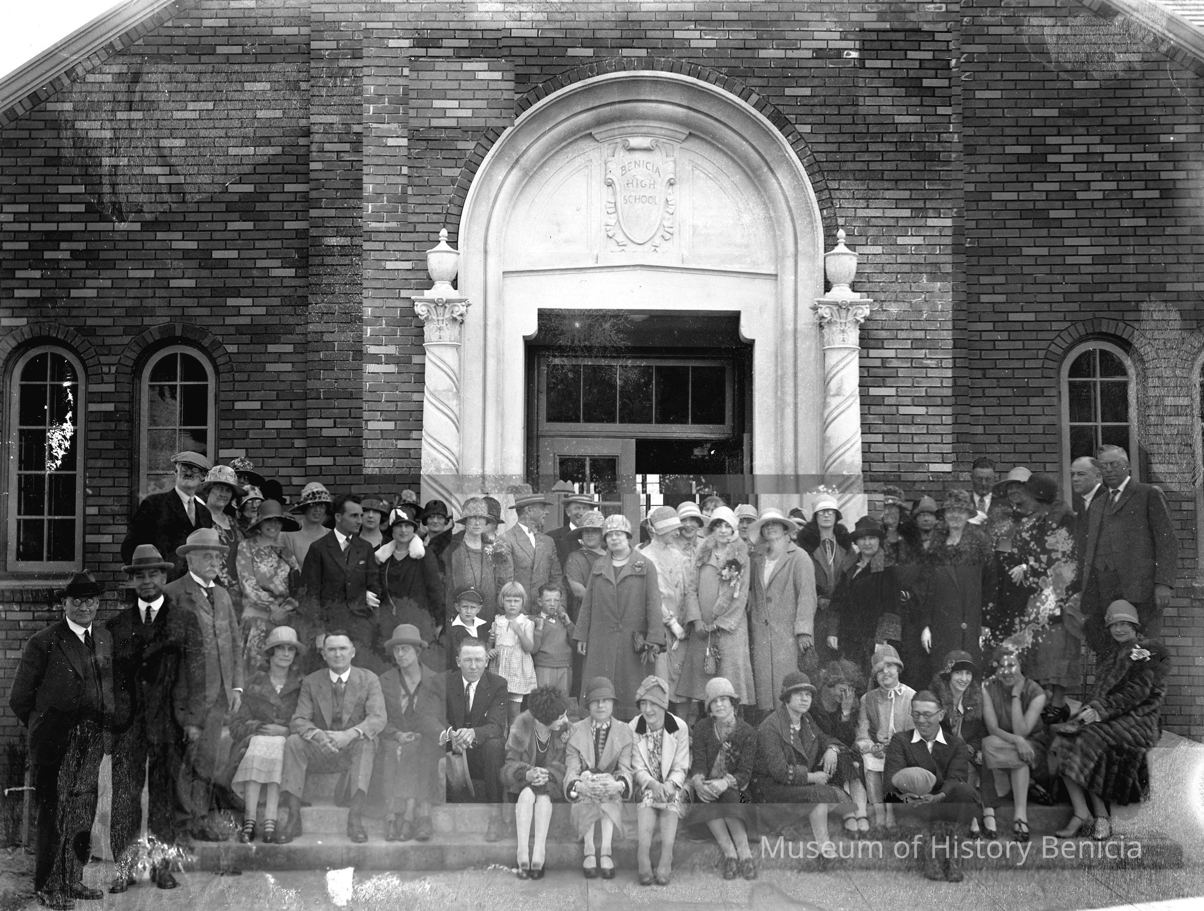 *same image as 2004.001.0383 Group of men and women outside of Benicia High School.