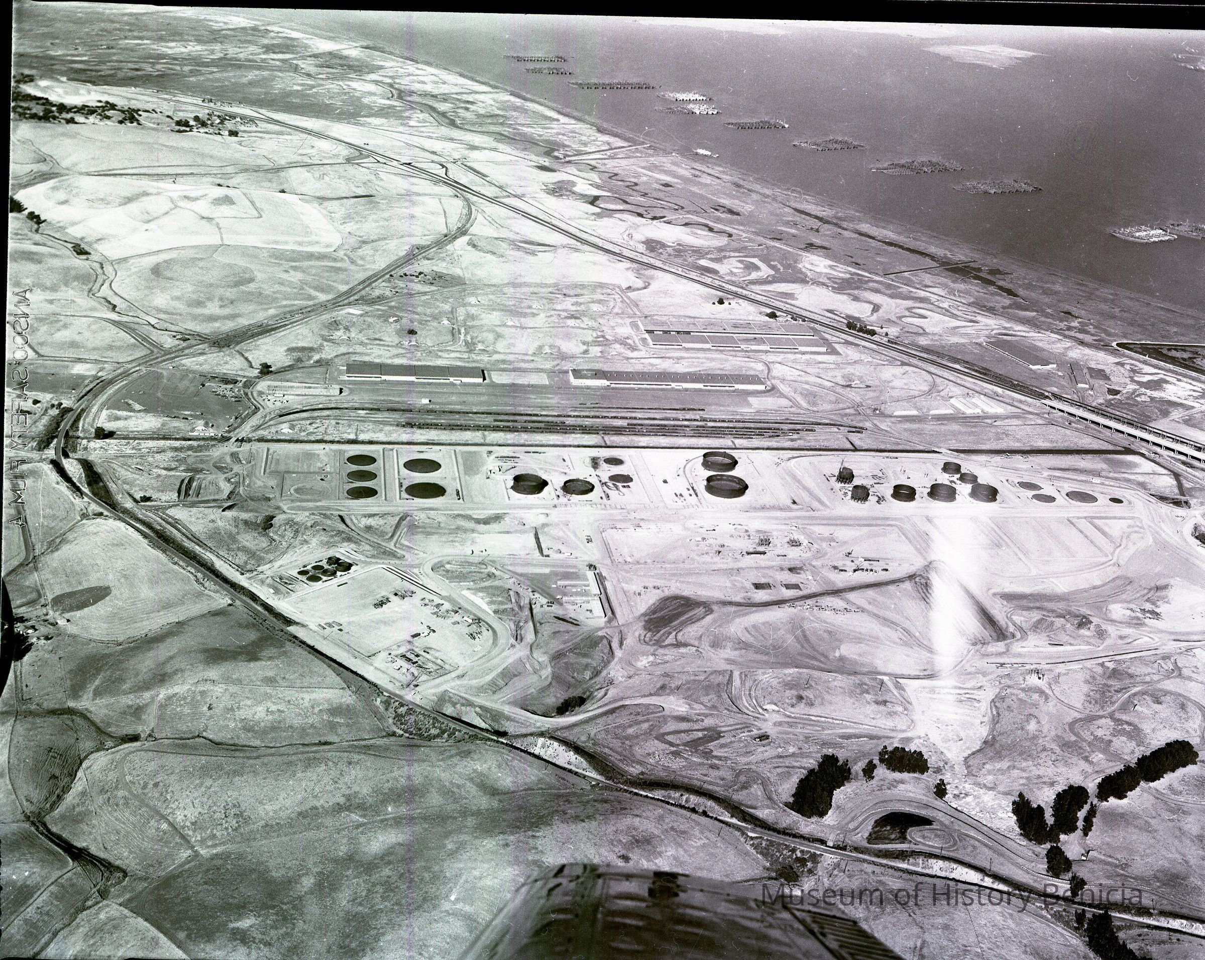 B/W negative for BHM99.11.48 and BHM99.11.49, early construction of the Humble Oil Refinery