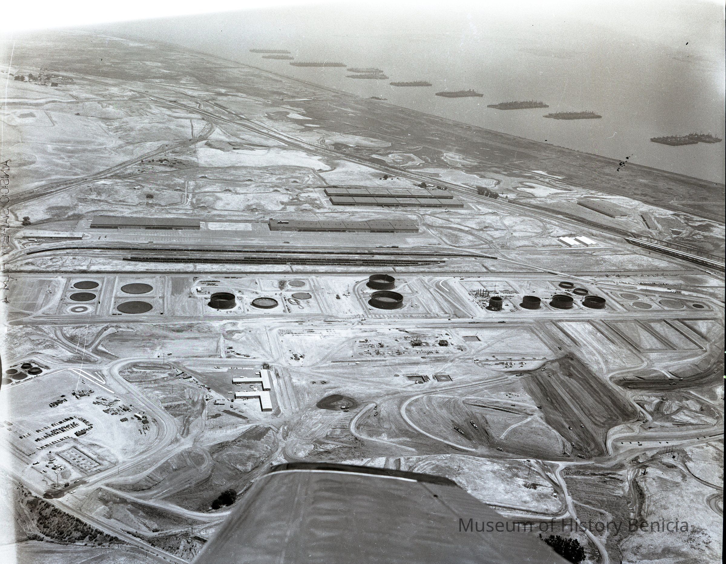 B/W negative for BHM99.11.42 and BHM99.11.43, early construction of the Humble Oil Refinery
