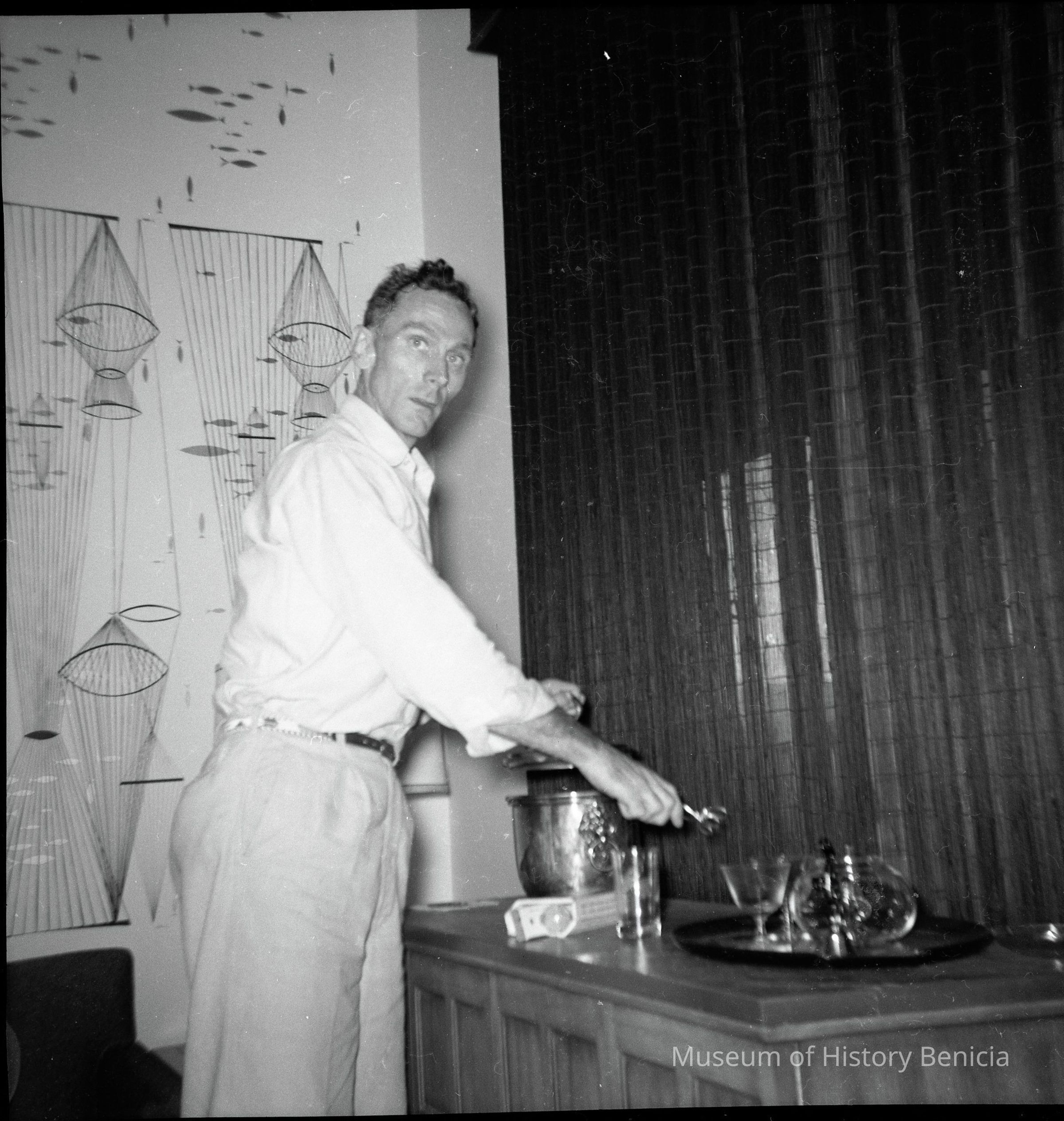 This shows a man making a drink. The man looks like Harry Wassmann.