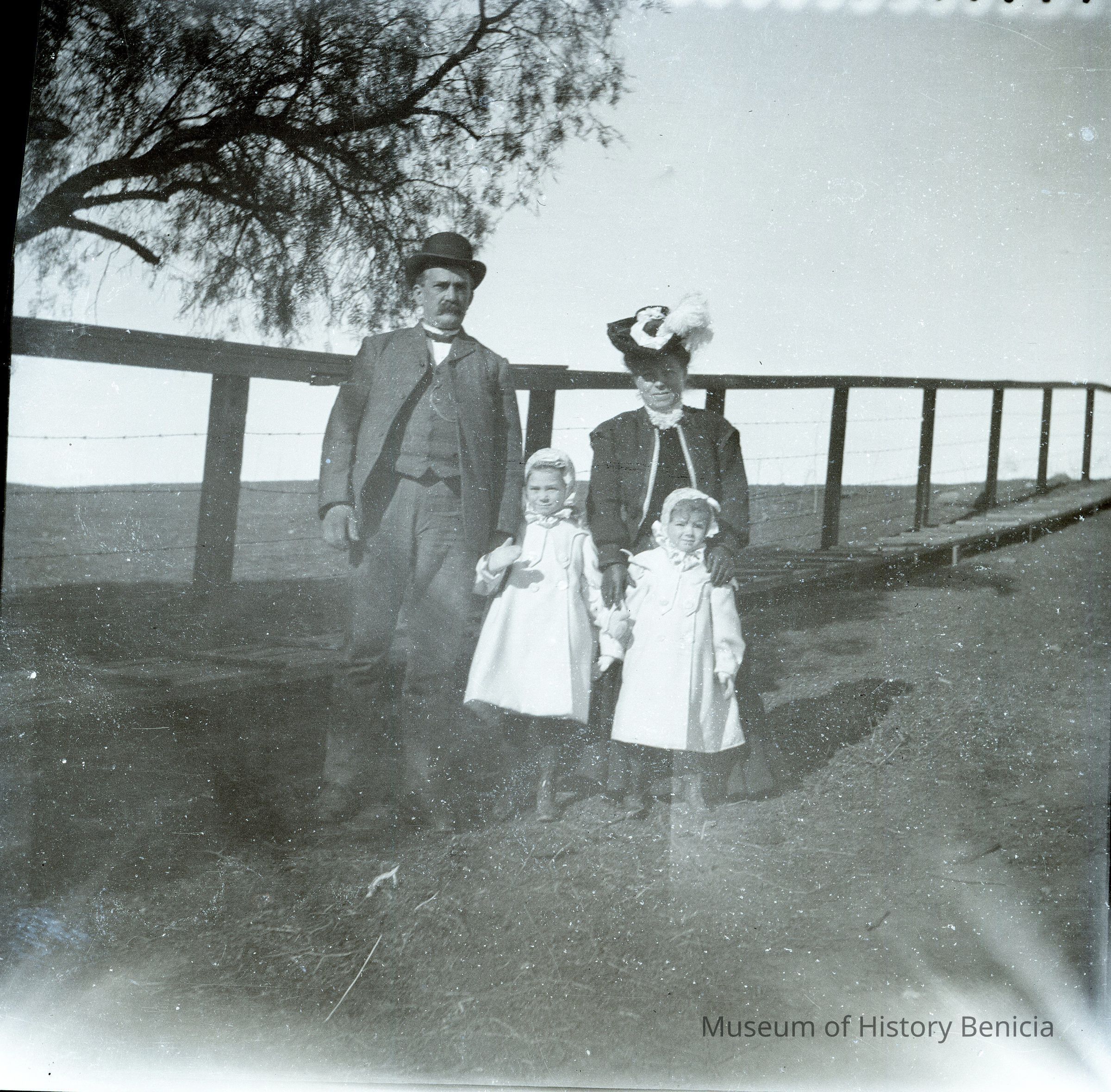 This negative shows John's wife Dita with her two daughters (Margurite and Violet) with an older man.