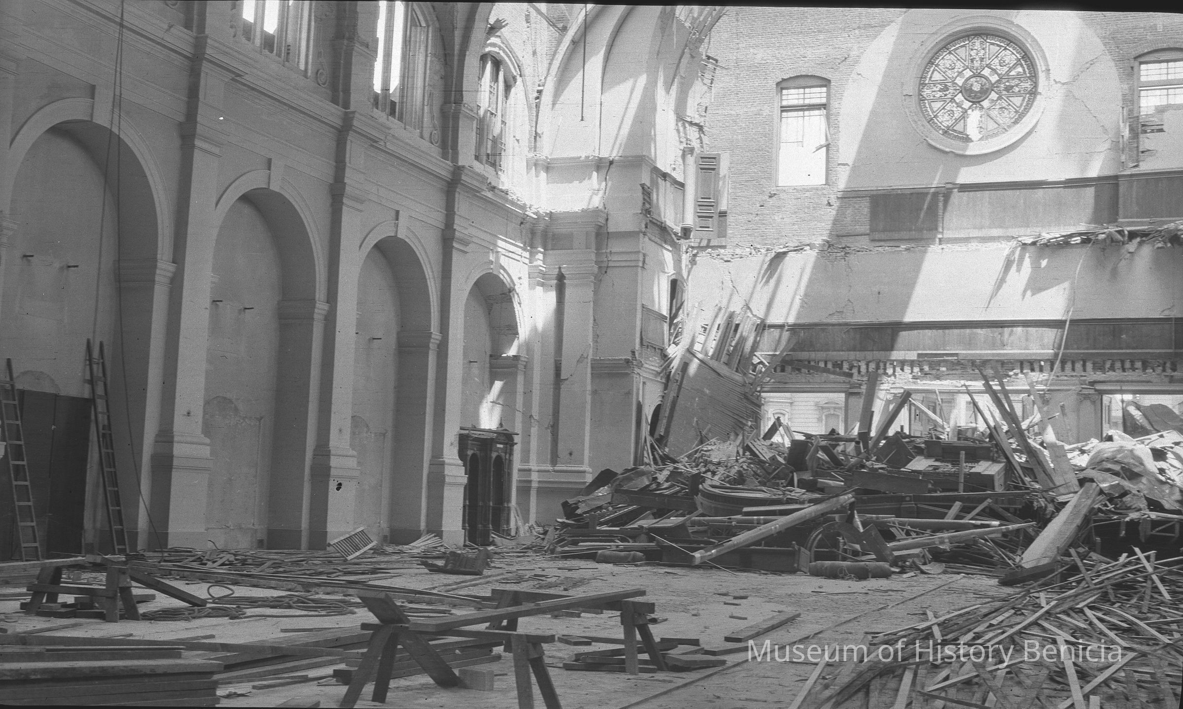 San Francisco Earthquake April 18 1906. St Dominici's Church damaged in earthquake. Interior of church in 2004.001.0906.Collection