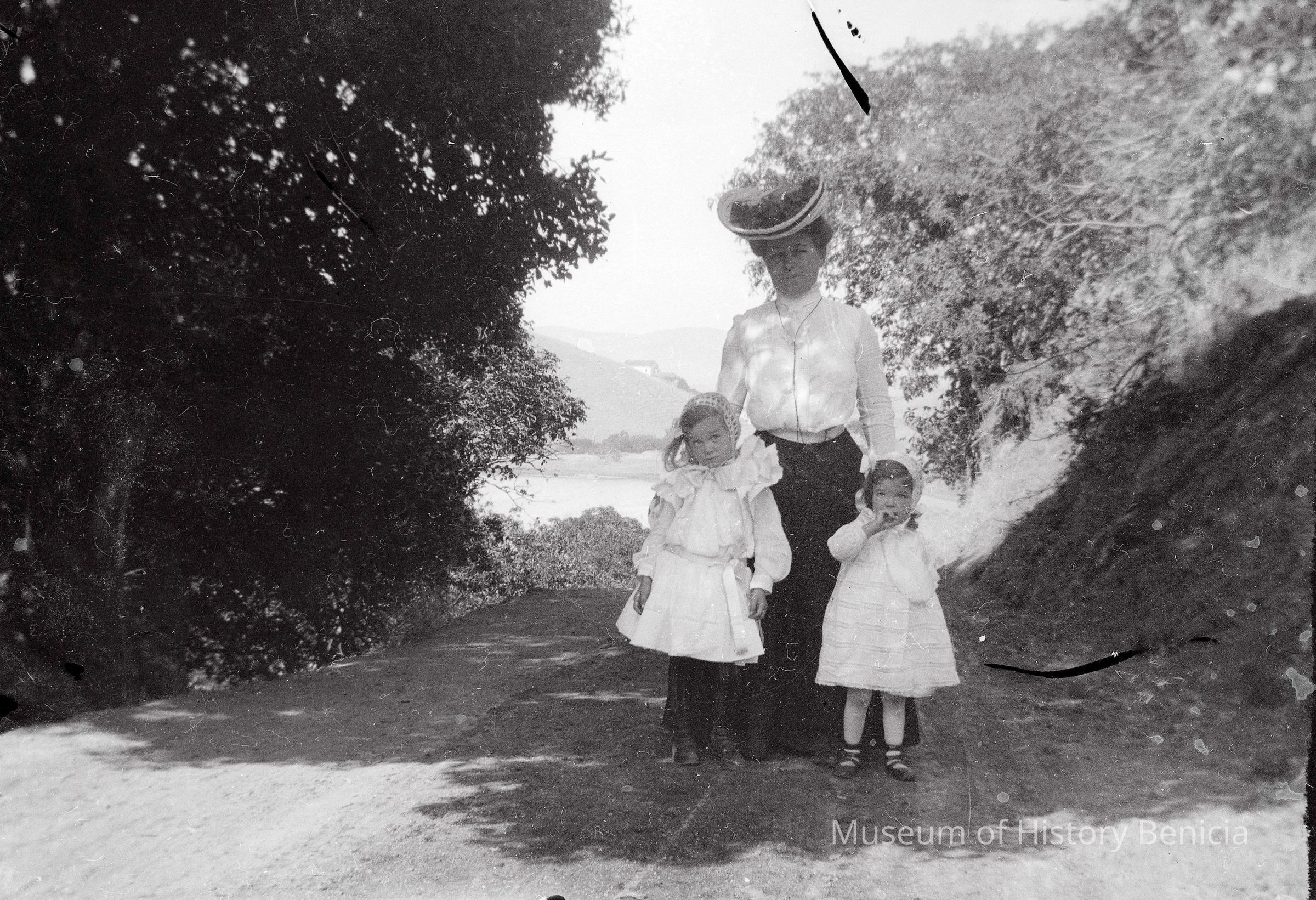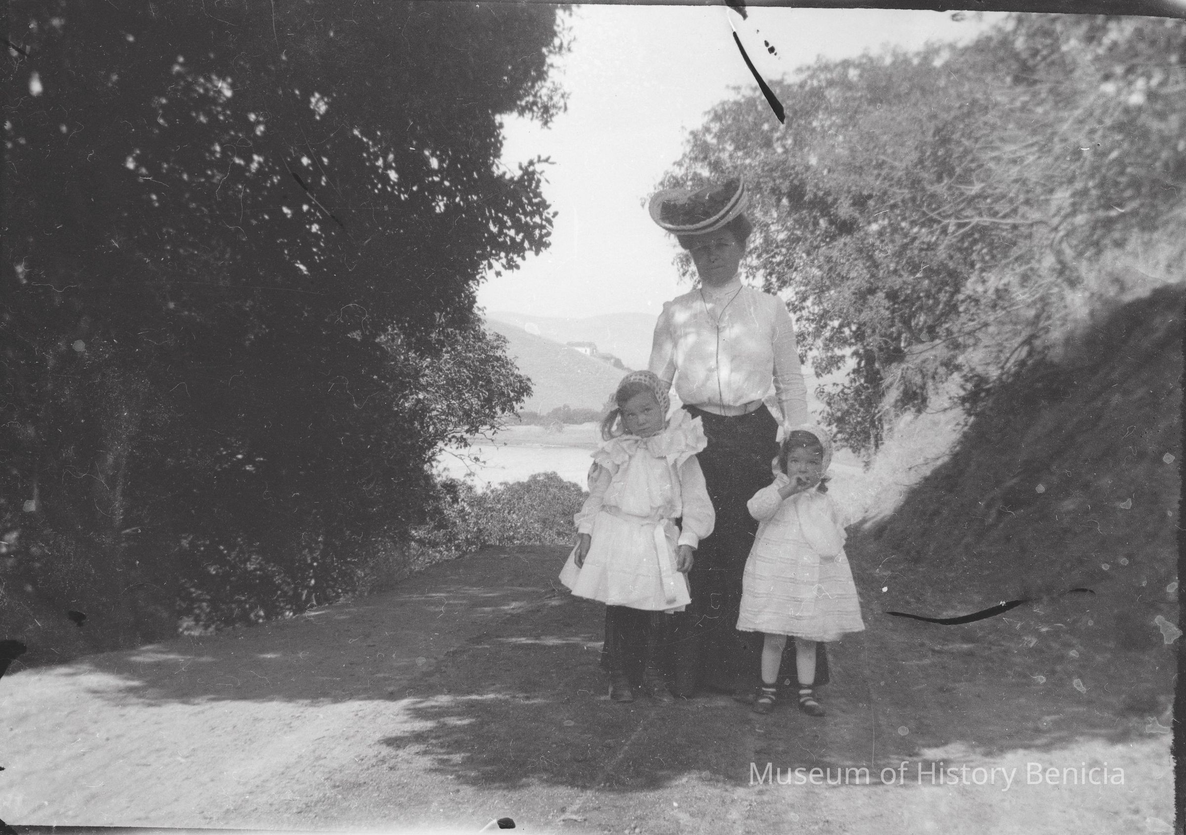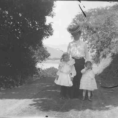 This photo shows Dita Molfino with her daughters Margurite and Violet on a country road.