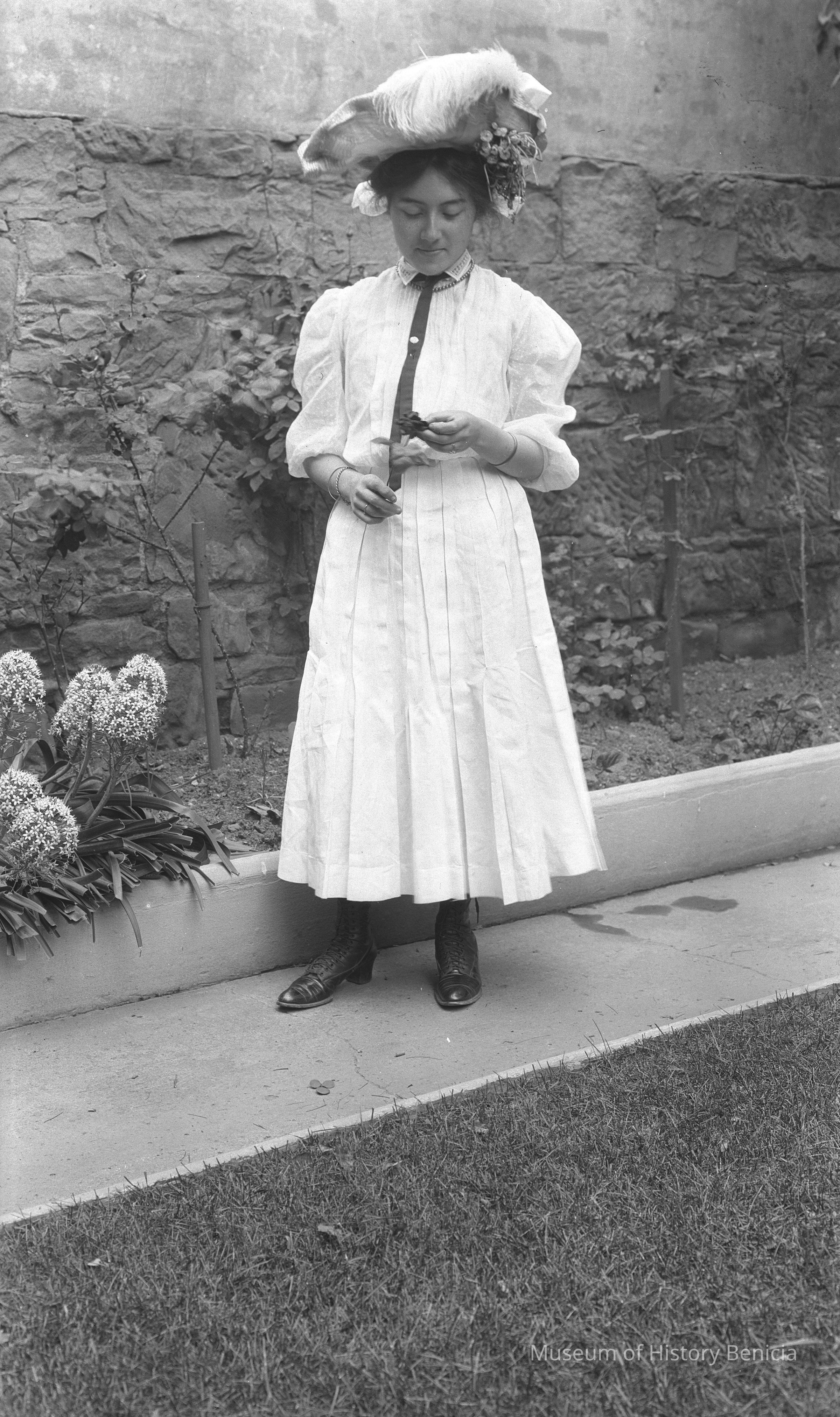 The note in the negative album is "Madeline April 15 1906. Myself." (This can't be Madeline Foley who is mentioned in Molfino's negative book. Madeline Foley was born in 1905 and this picture was taken in 1906.)Collection