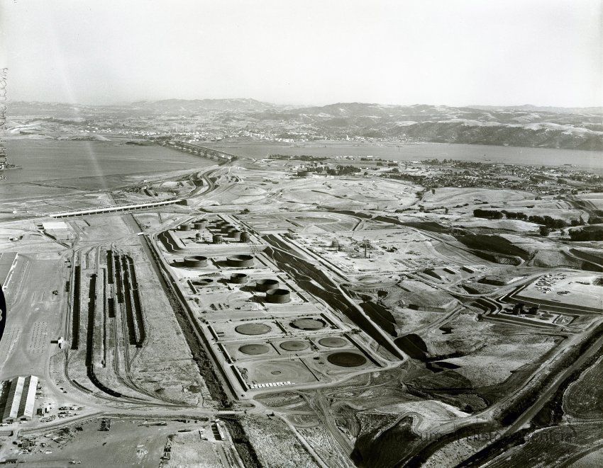 B/W negative for BHM99.11.121 & BHM99.11.122 early construction of the Humble Oil Refinery
