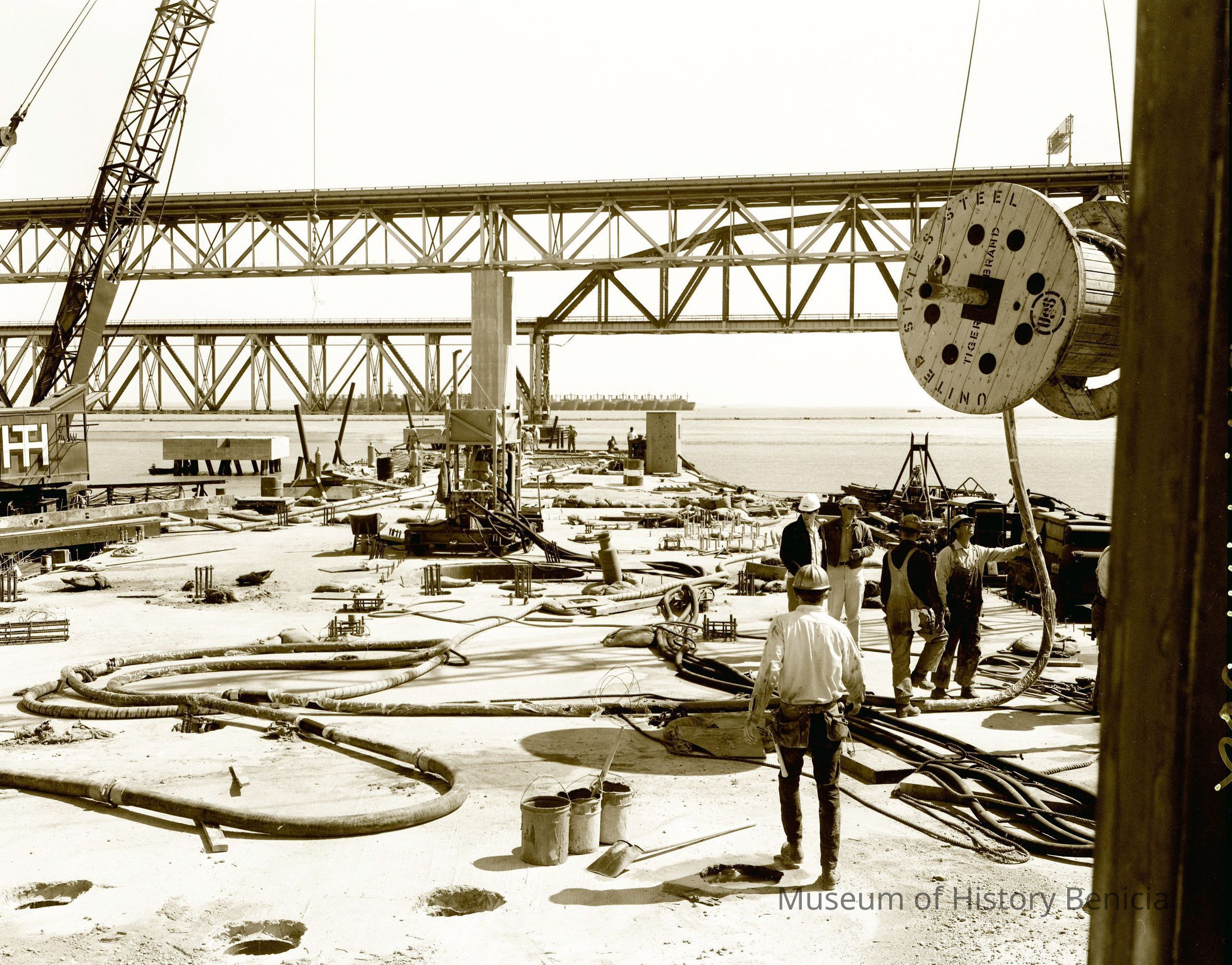 B/W negative ground view of dock/pier construction