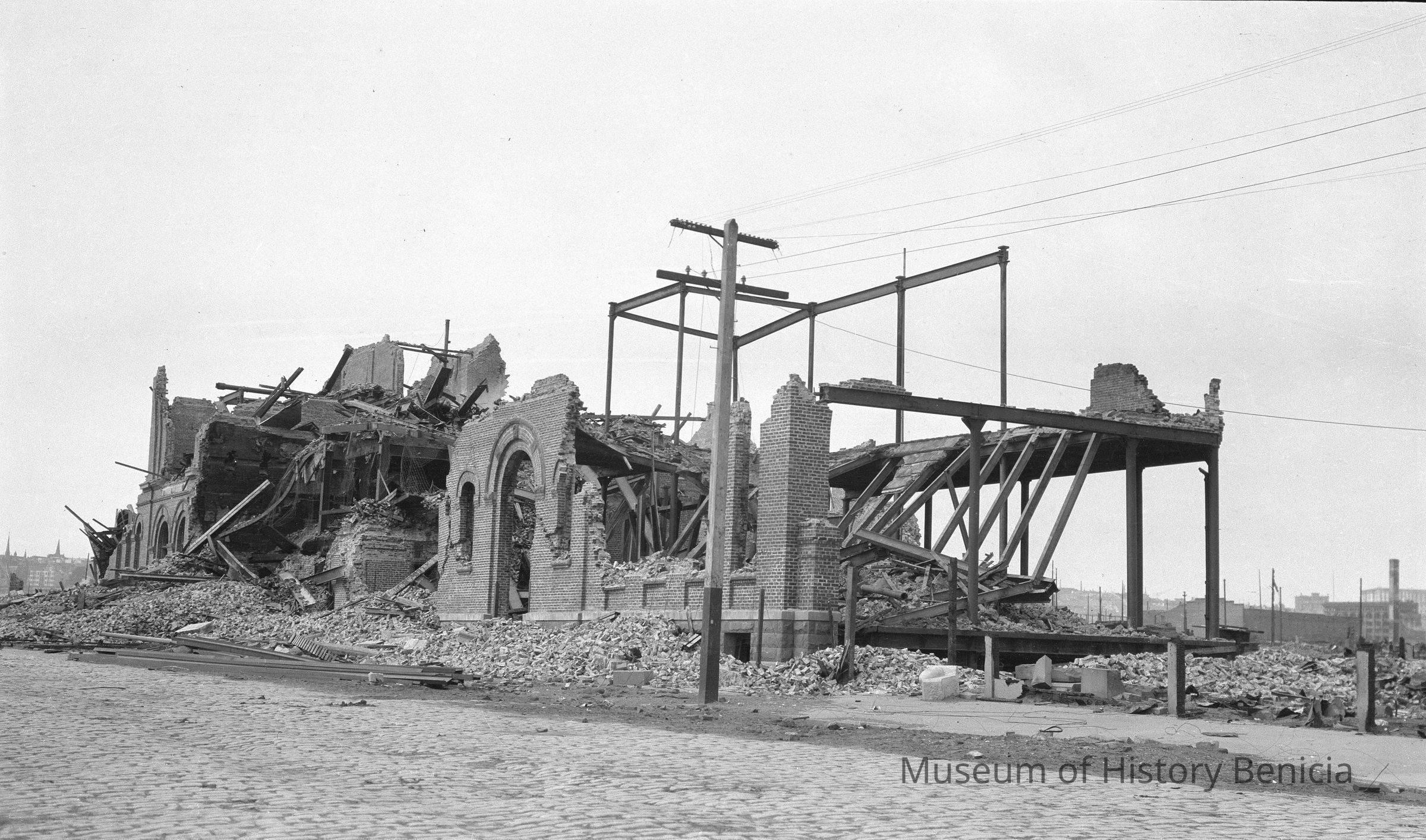 San Francisco, 1906. View of destroyed buildings from the earthquakeand fire. 1906 San Francisco earthquake. Hall of Justice and other wrecks. Church or school .