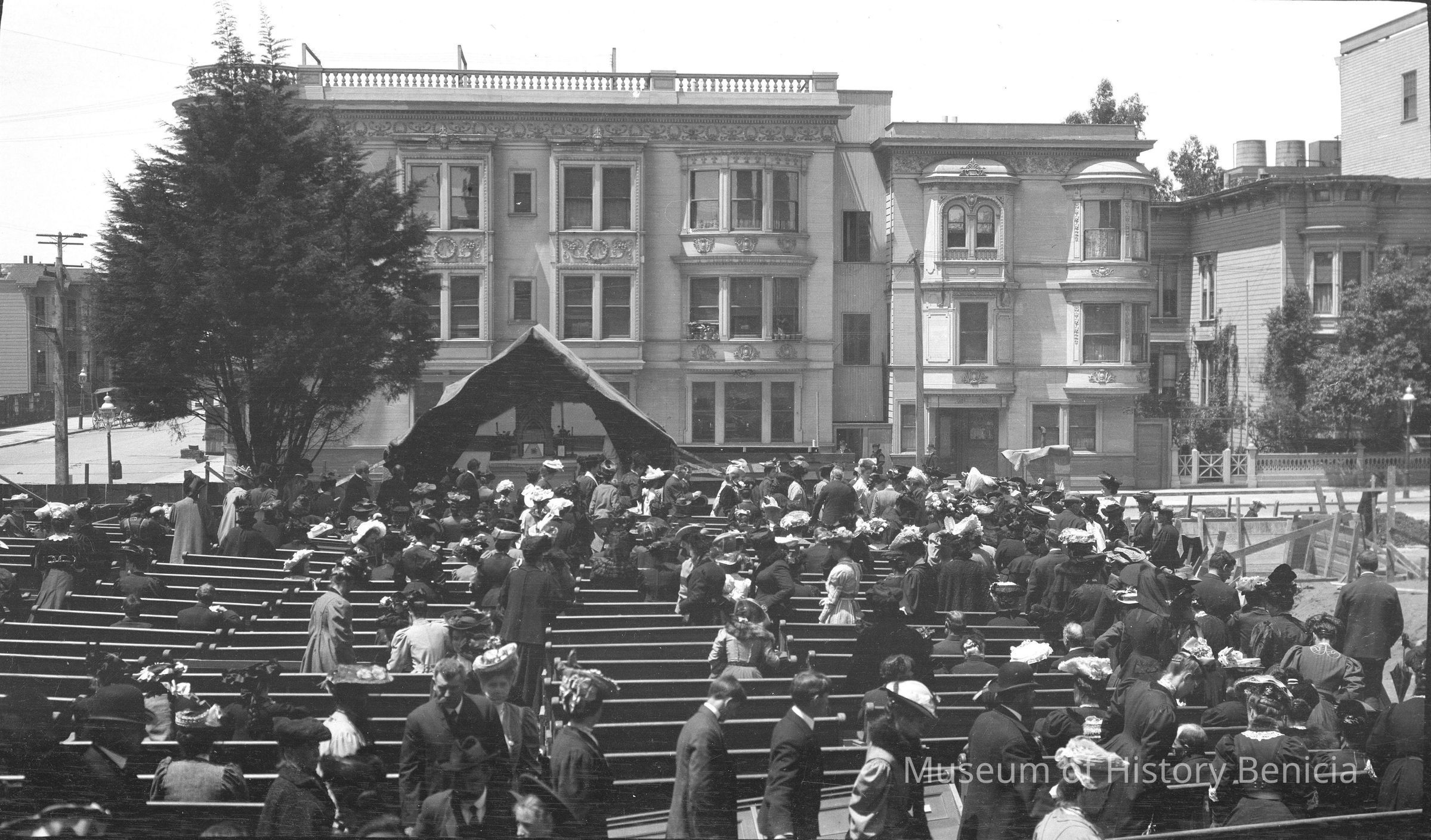 San Francisco Earthquake April 18 1906. Church service in a tent. Probably the outdoor services provided by St Dominics church.Collection