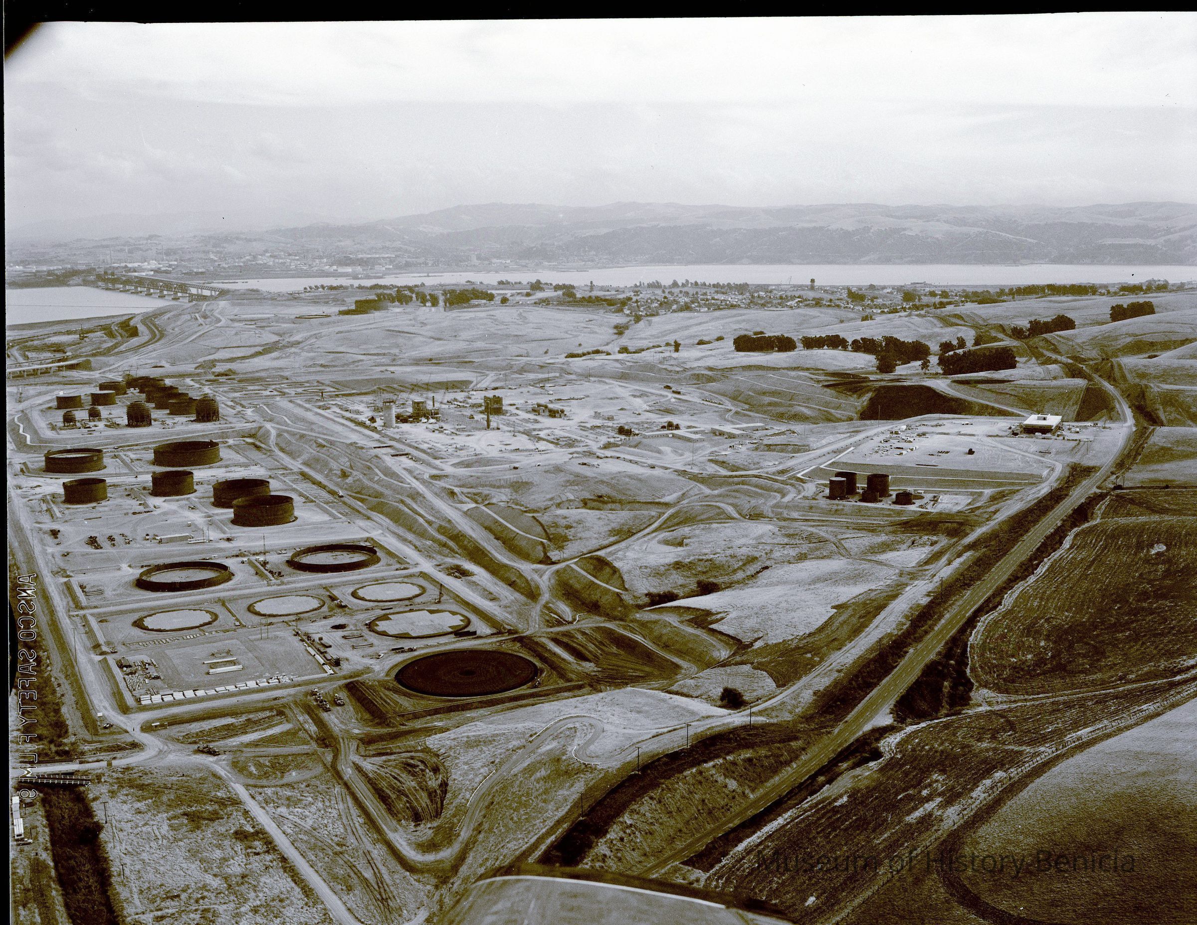 B/W negative for BHM99.11.200 and BHM99.11.201, early construction of Humble Oil Refinery