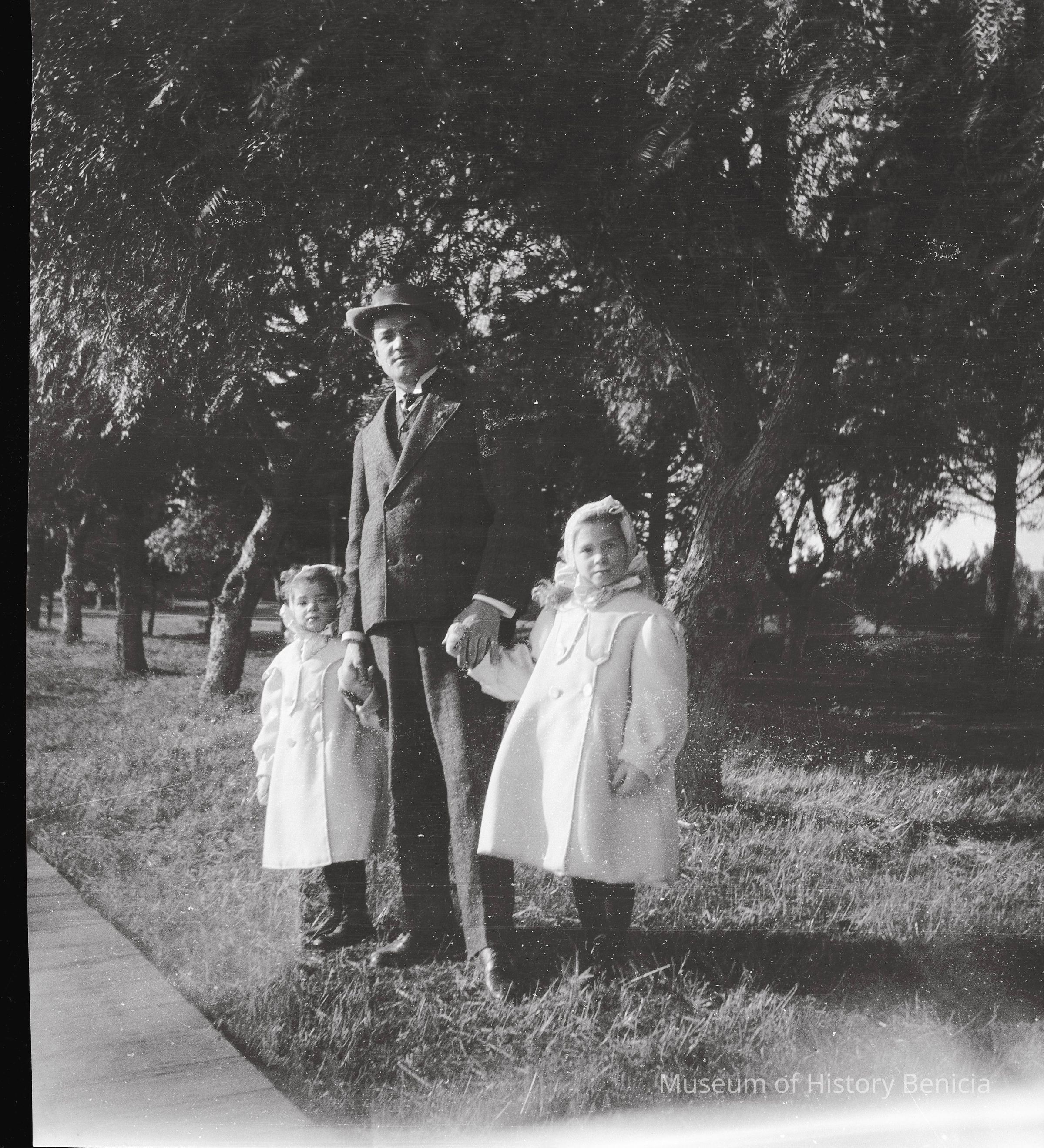 This negative shows John Molfino with his two daughters (Margurite and Violet).