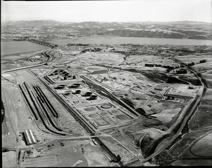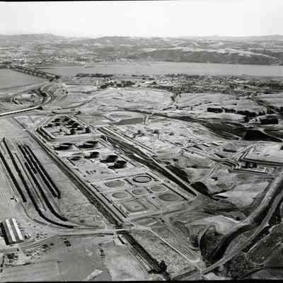 B/W negative of BHM99.11.161 & BHM99.11.162 early construction Humble Oil Refinery